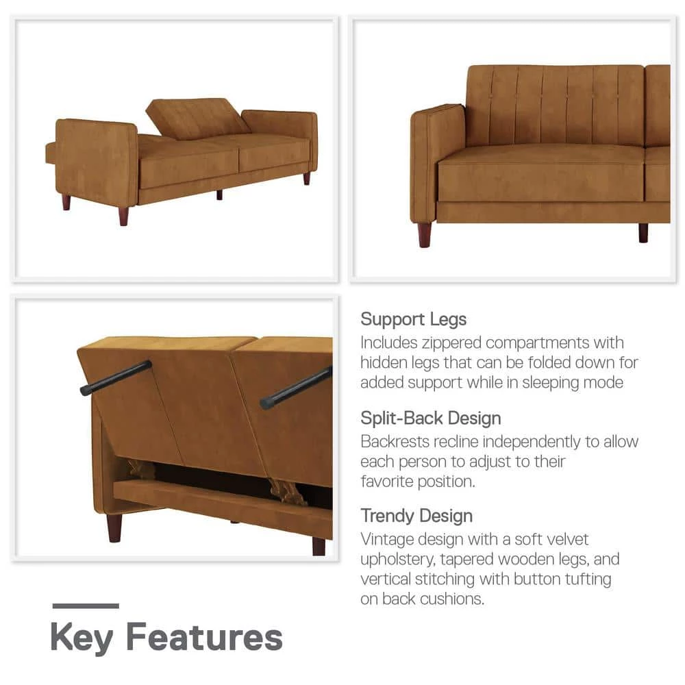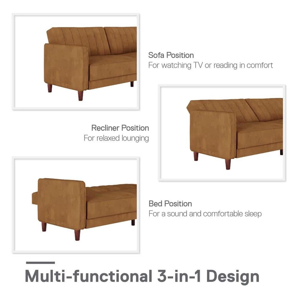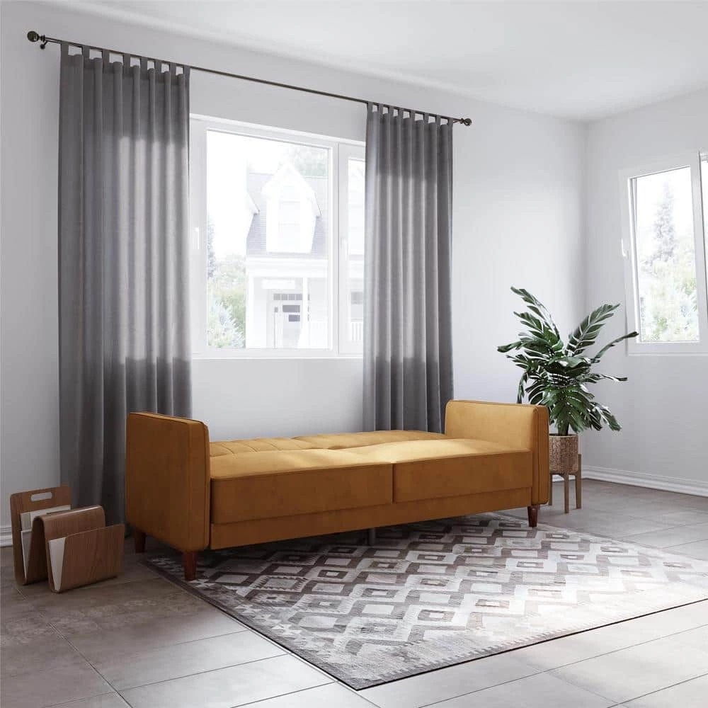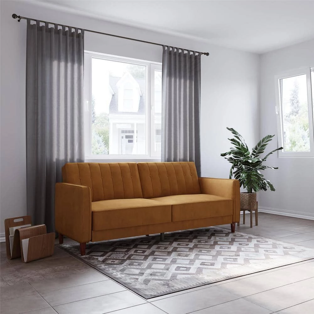 Ever watched an old movie from the 50s and reveled at the look of the luxe scenery – refined and so cool for the times. Well, mid-century mod is making a comeback and luckily it doesn’t cost a fortune to decorate your space with a touch of that understated glamour. One such piece that will totally revive the appearance of your home is the DHP Iris Tufted Transitional Futon. Showcasing a vintage design, it is decked out in soft-to-the-touch velvet upholstery with tapered wooden legs. Allowing for sitting, lounging, and sleeping capability, the 3-seater sofa features a split-back design and convertible backrest so from couch to sleeper bed, you choose how to configure your furniture depending on your needs. Thick seat cushioning and padded armrests add to the comfort factor. Its space efficient profile will also let you incorporate it easily into tighter living room and home office areas without having to skimp on style.
