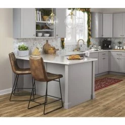 The Home Decorators Collection Ivers counter stool is mid-century modern at its best. Ease back into the cushioned bucket seat and wile away the hours at a counter height table to island. Neatly stitched tufting gives the faux leather upholstery a cool facade.