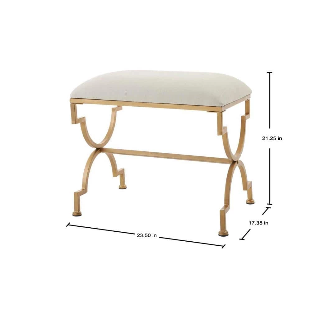 This metal stool adds a touch of glam to your vanity table. It’s metal frame is finished in a bright gold and topped with an ivory upholstered seat allowing this stool to blend with a variety of color schemes.
