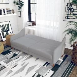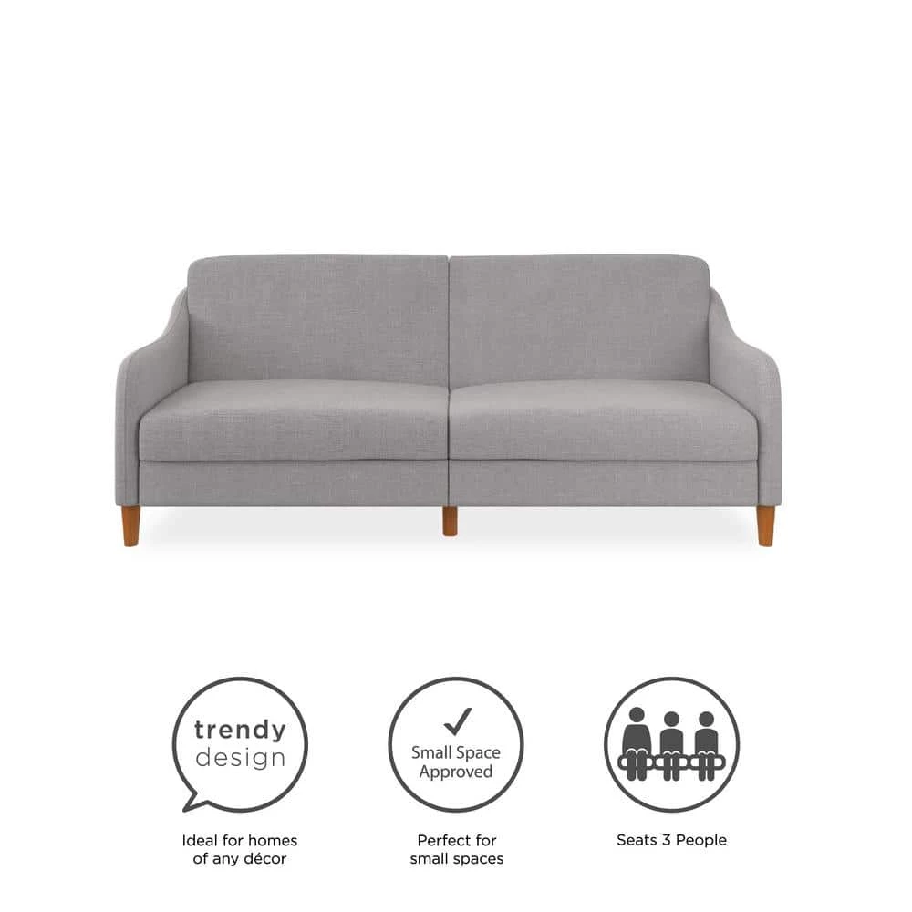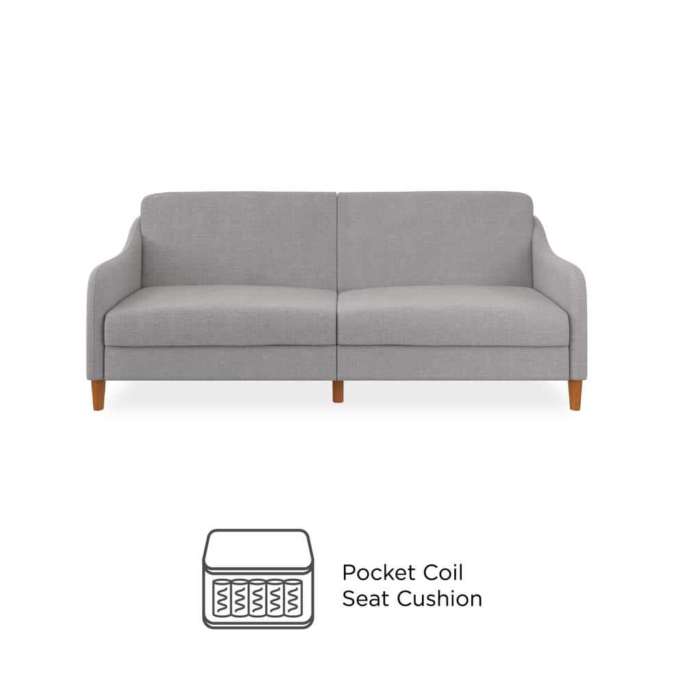 With the DHP Jalen Coil Futon, we have entered a new era of sofa beds. With a modernized design and rich linen upholstery, the Jalen is not only stylish, but also extremely convenient. Standing on sturdy wood legs, this futon is composed of independently encased coils and foam that will leave your overnight guests wanting to come back just to enjoy a great night’s sleep. Whether you want a pop of color or a more neutral tone for your living room, the Jalen has options to suit all aesthetics.
