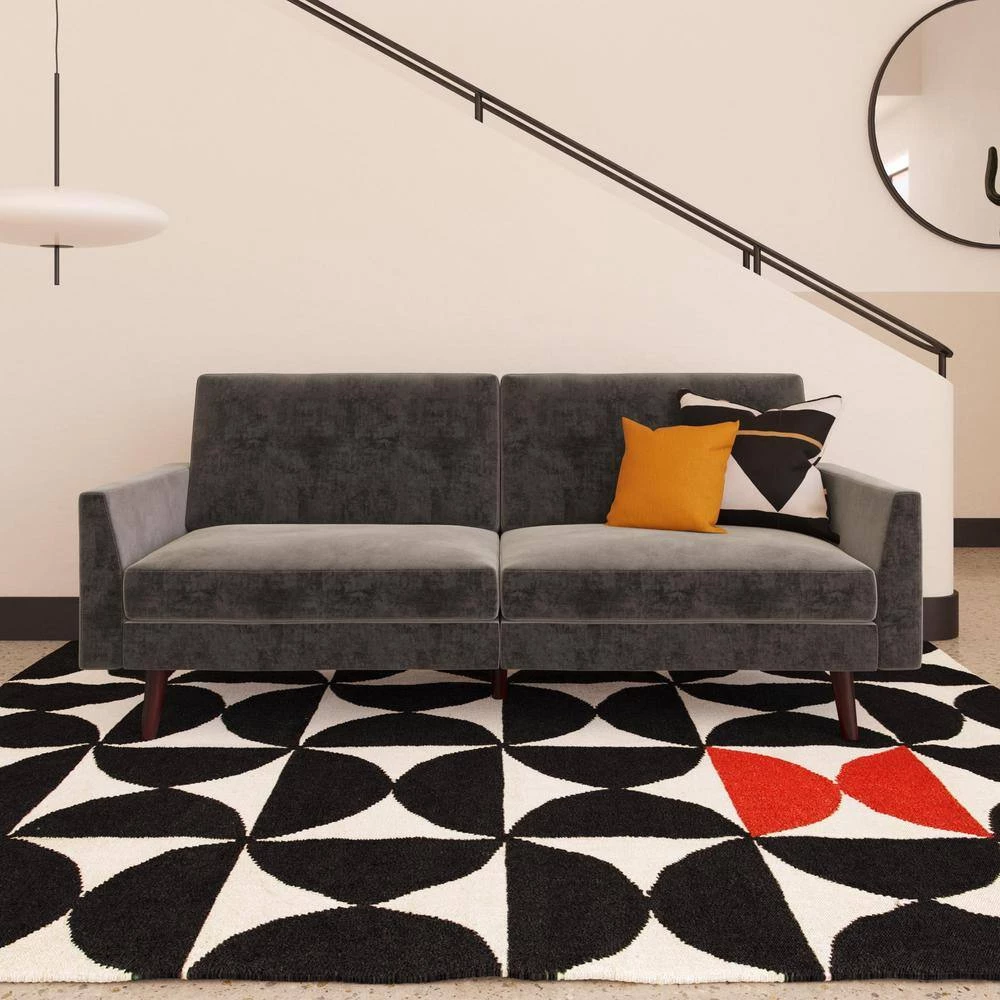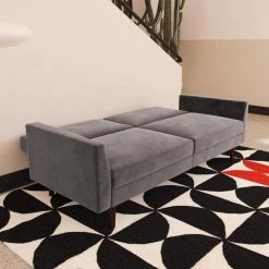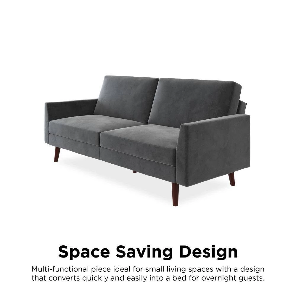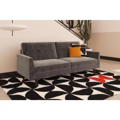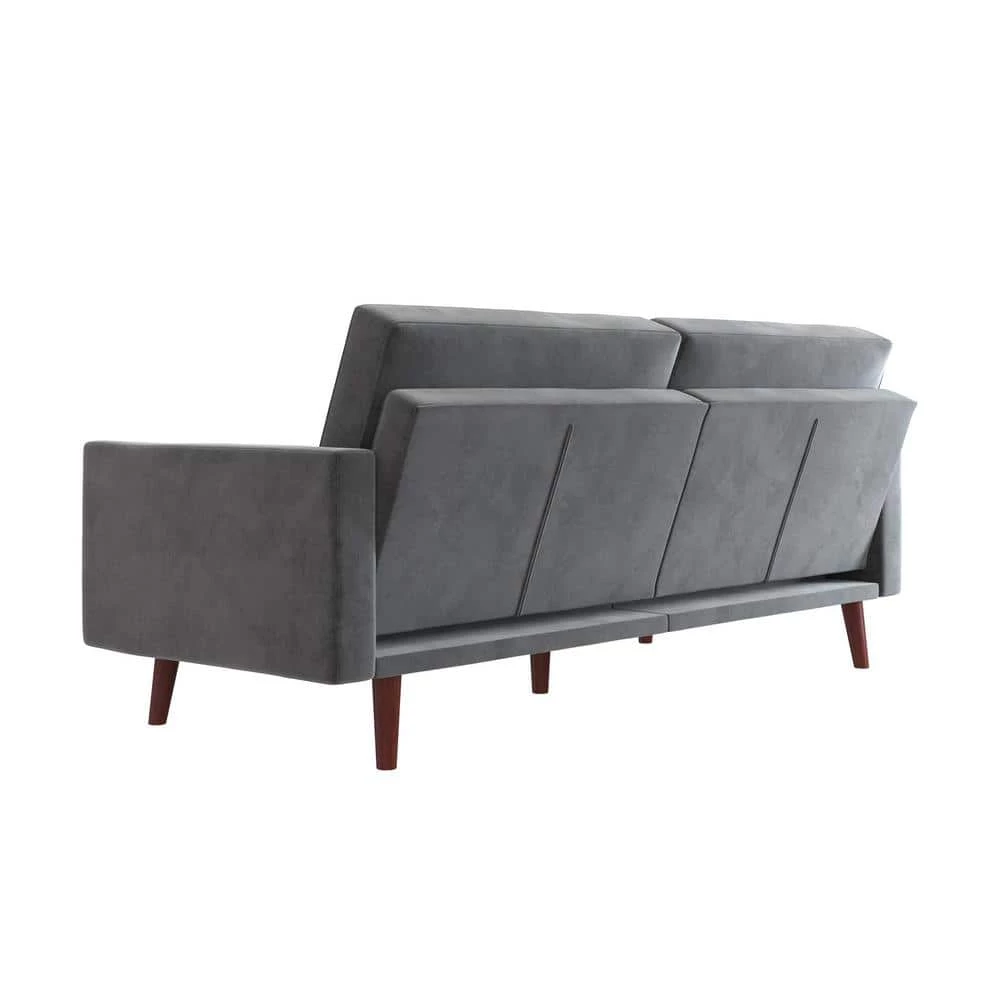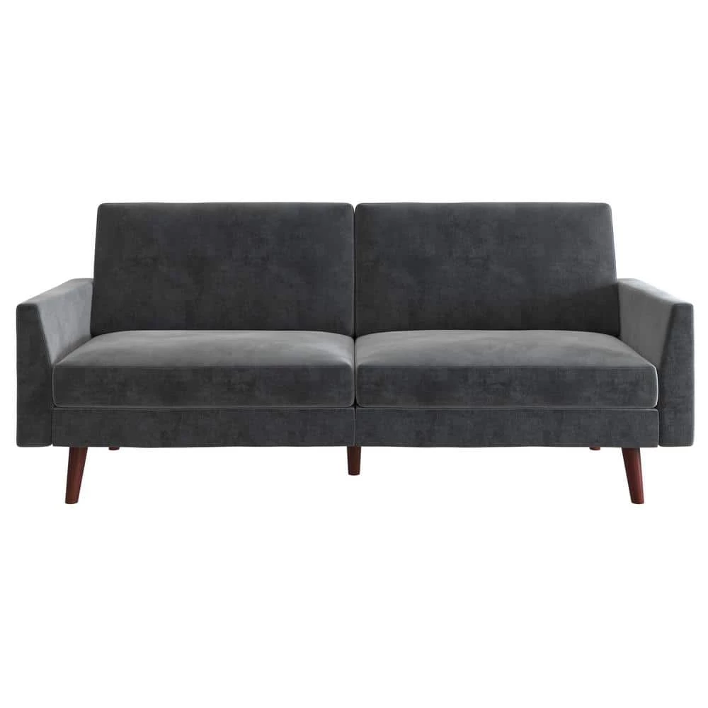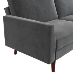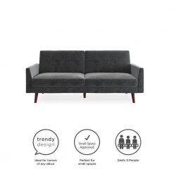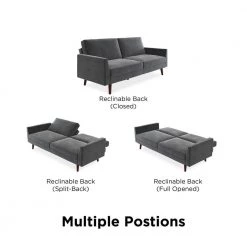 The DHP Jena Futon with Coils is the ultimate crossover between a stylish, comfortable and functional furniture piece. This futon is built to wow your living room instantly. With its lush and soft velvet upholstery, warm tapered wooden legs that form a nice clean-lined silhouette, the Jena guarantees to bring a sense of modern luxury to any living room. The slim track armrs, padded backrest and pocket coil seat cushions are sure to provide you with top comfort and relaxation. Built to last, the frame is made with sturdy wood to ensure durability and stability. The Jena is versatile, allowing you to sit back with friends over coffee, recline the backresy to slouch back for a midday retreat or lay completely flat to accommodate overnight’s guest with an additional bed. Available in various colors, the Jena is versatile, stylish and comfy.