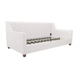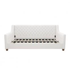 Comfortable and fashionable best describe our DHP Jenna Upholstered Daybed. Designed with beautiful diamond tufted detailing, this daybed is guaranteed to liven up your living room, guest room or office. Complete the look by styling it with your favorite decorative pillows and blankets. Practical for accommodating overnight guests, this spacious daybed will have your guests waking up feeling rejuvenated. Founded on a solid frame, our daybed is guaranteed to provide you ultimate comfort and stability. Benefit from its multiple wooden slats for that added support needed for a good night’s sleep. With a weight capacity of 400 lb, our daybed is available in multiple colors and finishes including velvet, linen and faux leather. Our DHP Jenna Velvet Upholstered Daybed is guaranteed to add style and comfort to your room.