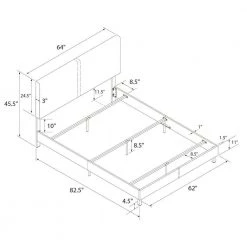 - Queen bed dimensions: 82.5 in. L x 64 in. W x 45.5 in. H, queen bed weight limit: 500 lb.