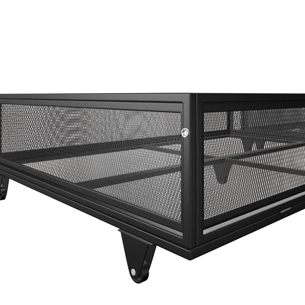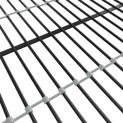- Made with sturdy metal and mesh details, it includes 115- in full-length guardrails, an integrated ladder for safe climbing and secured metal slats no foundation required