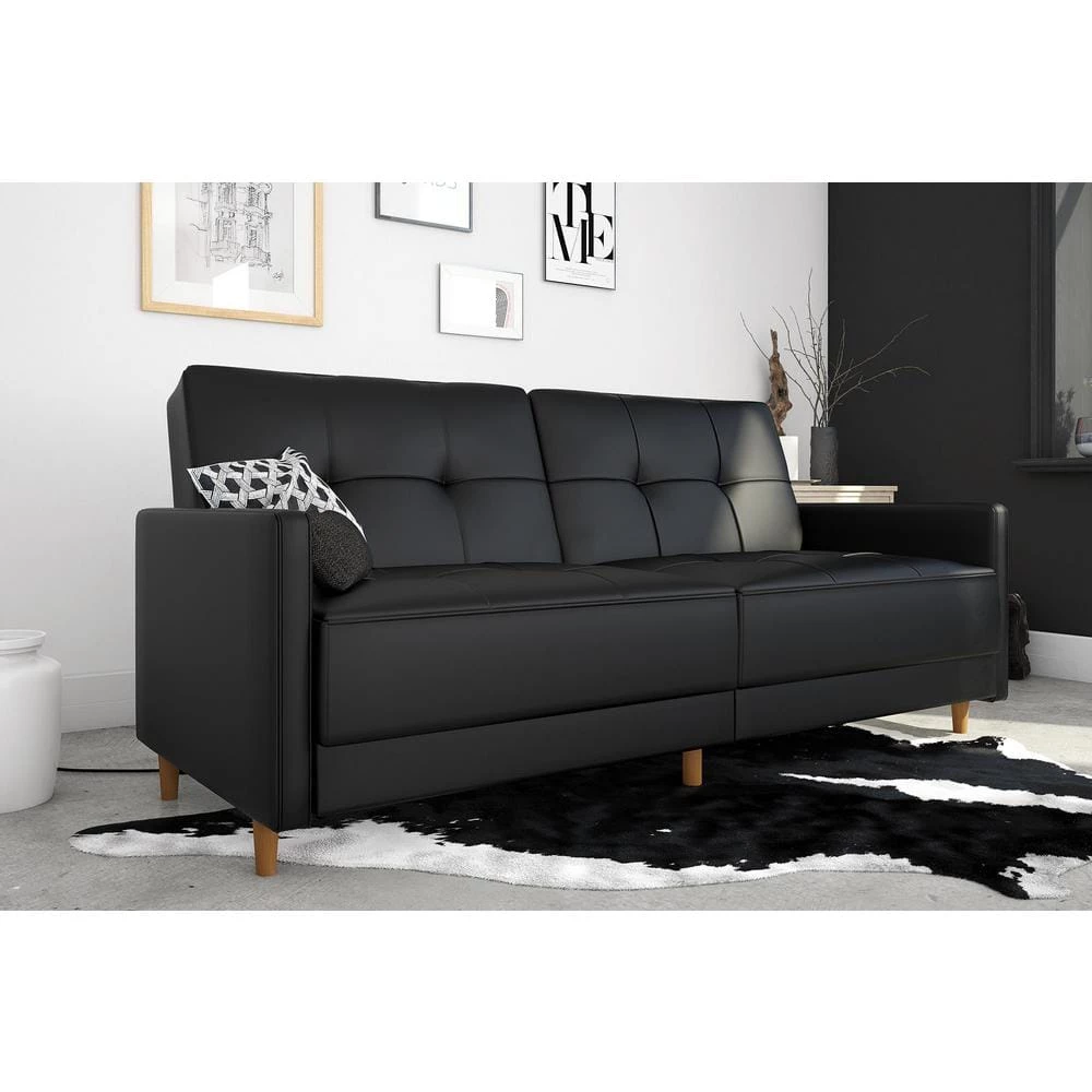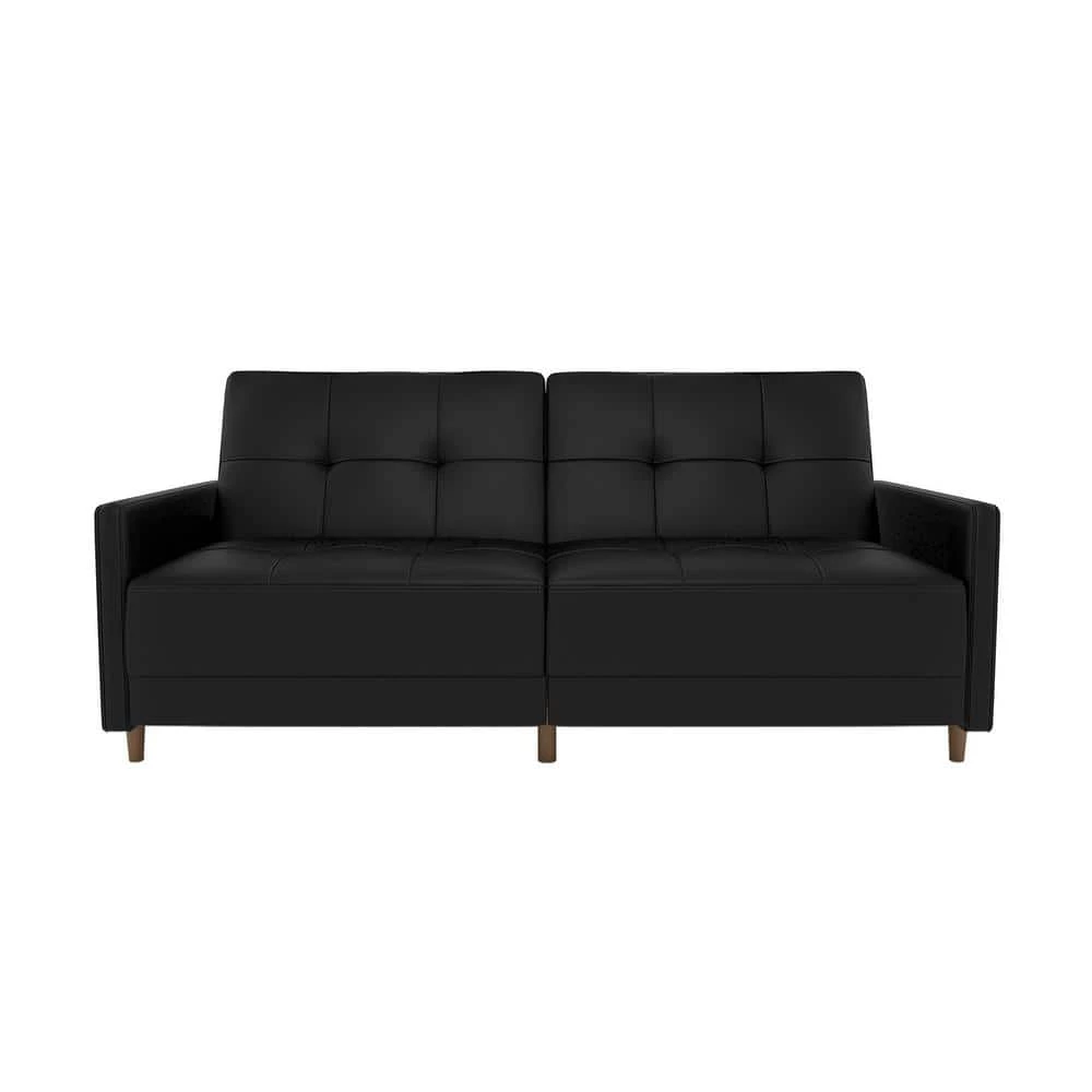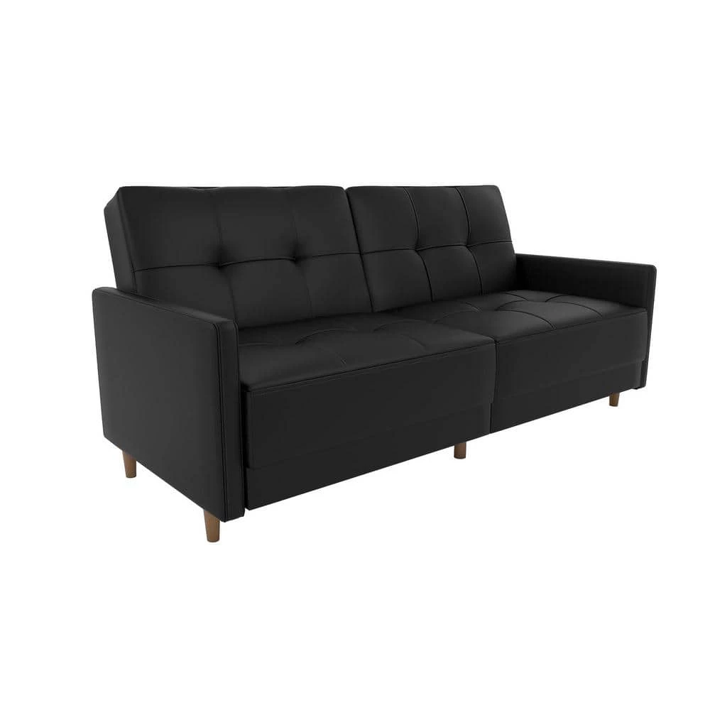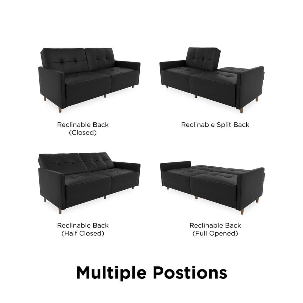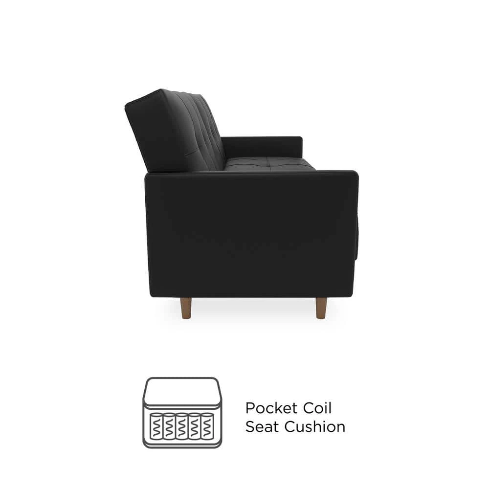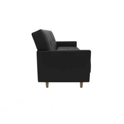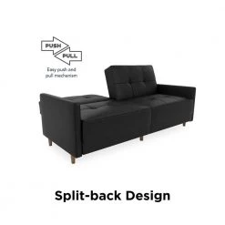 The Kory Coil Futon is the perfect combination of a modern and mid-century appeal. Its beautiful upholstery is available in multiple colors and sizes. It provides a glamour that will suit any room decor. Its polished wood legs adds style, and its center legs provide extra support. This futon has a hidden secret: a split-back design which allows adjustment to the backrest angle for everybody’s comfort preference. Each person sitting can either sit up, lounge back, or open the back to lie flat. Its independently encased coils offer maximum comfort in the day and lots of supplemental support by night when the futon turns into a daybed for overnight guests. Ships in one box for easy handling and assembly. Weight limit is 600 lb. While the Kory is perfect for maximizing space in small living spaces, its style and comfort is not minimized in any way.