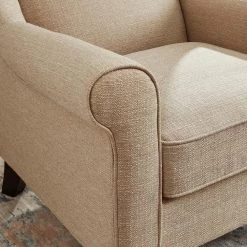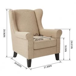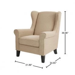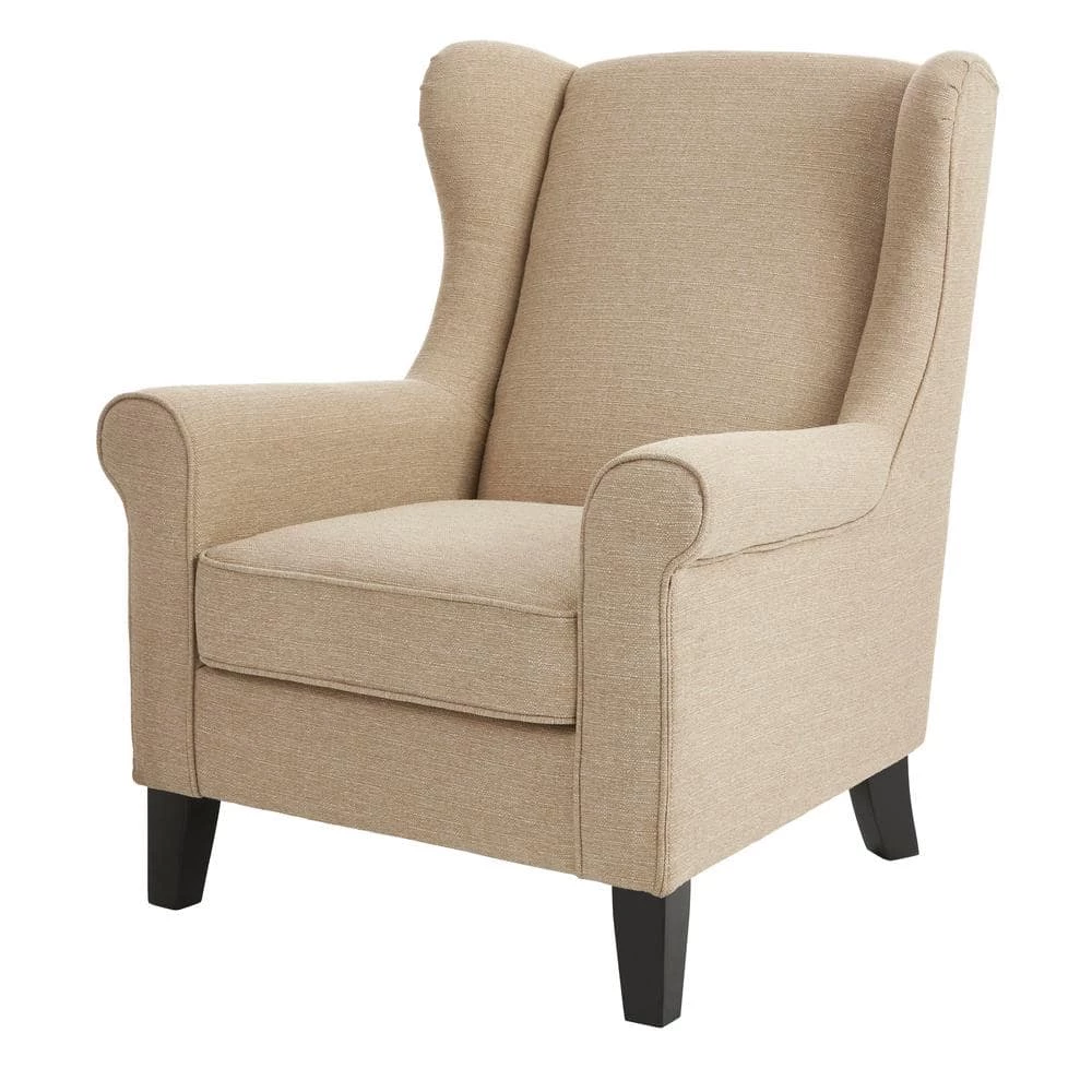 Create a comfortable seating area with this HDC Larkyn upholstered accent chair. With thick padding, this high-back armchair provides an inviting space to relax. The khaki fabric upholstery pairs easily with a range of color schemes and adds to a cozy ambience. Quality pinewood and rubberwood construction ensures lasting durability, while the wingback design adds a charming look to your living room. This HDC Larkyn upholstered accent chair features black wood legs for a beautiful color contrast.