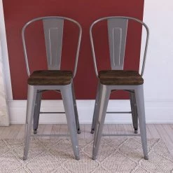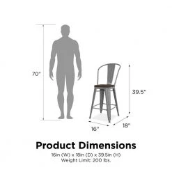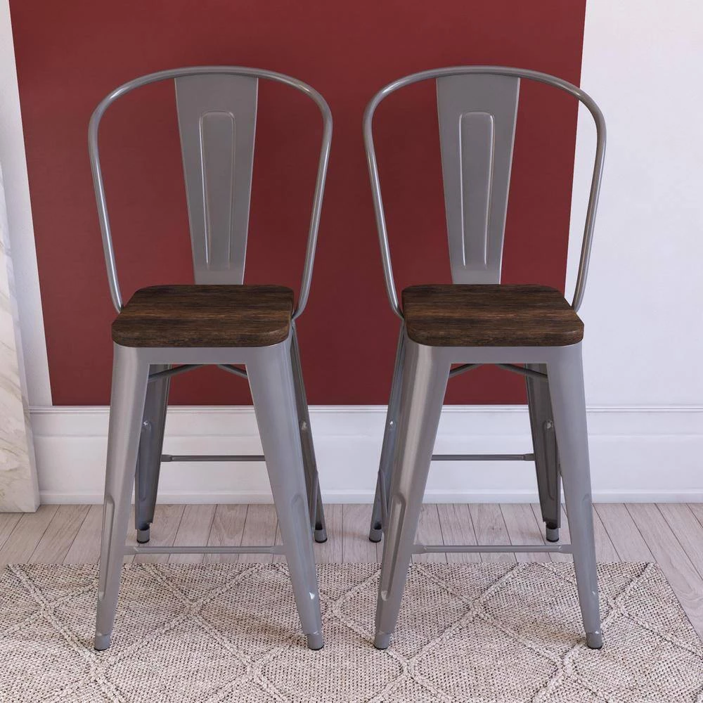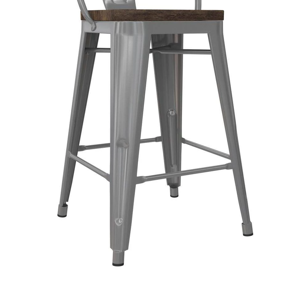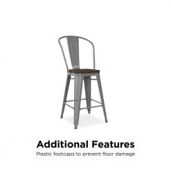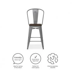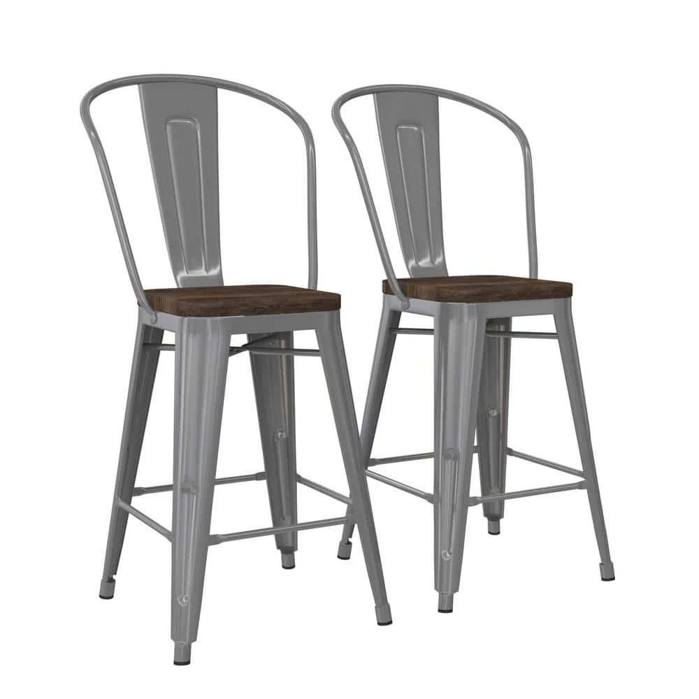 The DHP Lena 24″ Metal Counter Stool is an urban and classic statement piece. With a wood seating surface and a distressed finish in silver metal, this stool is highly fashionable. It’s made in sturdy metal and comes with a backrest and footrest, making it the perfect dining and conversation seat.