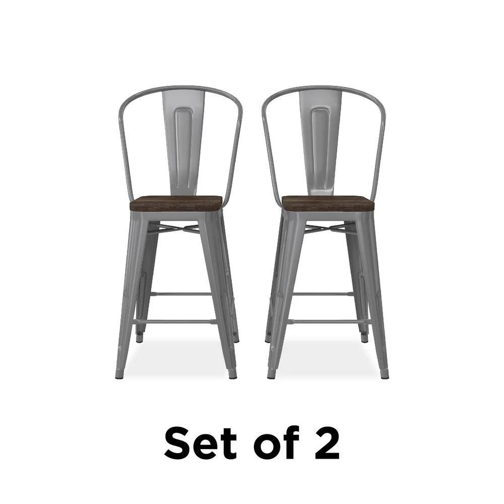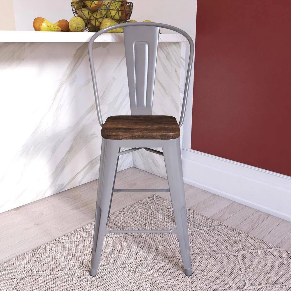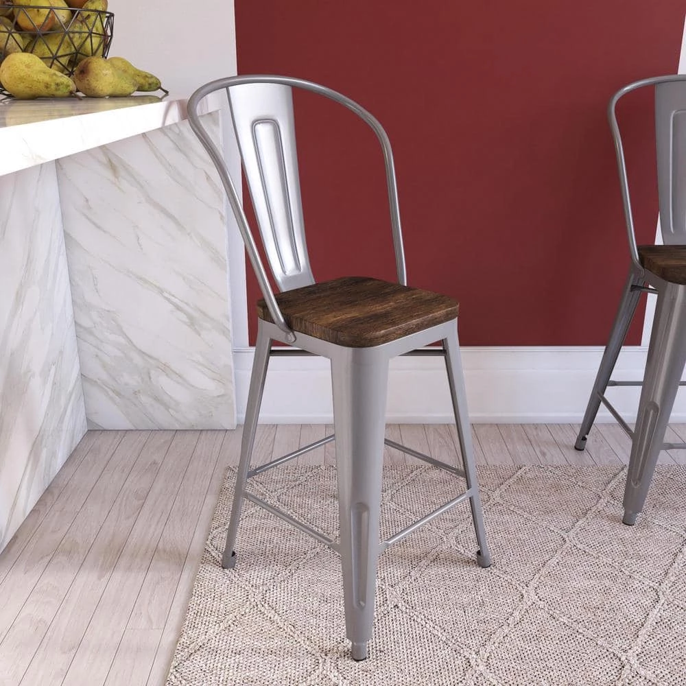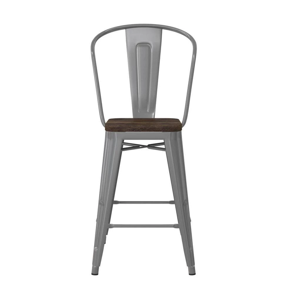 The DHP Lena 24″ Metal Counter Stool is an urban and classic statement piece. With a wood seating surface and a distressed finish in silver metal, this stool is highly fashionable. It’s made in sturdy metal and comes with a backrest and footrest, making it the perfect dining and conversation seat.