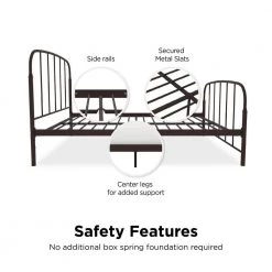 - Sturdy metal frame includes secured metal slats and center support legs slat base provides better air flow circulation to keep mattress fresher longer (no foundation required)