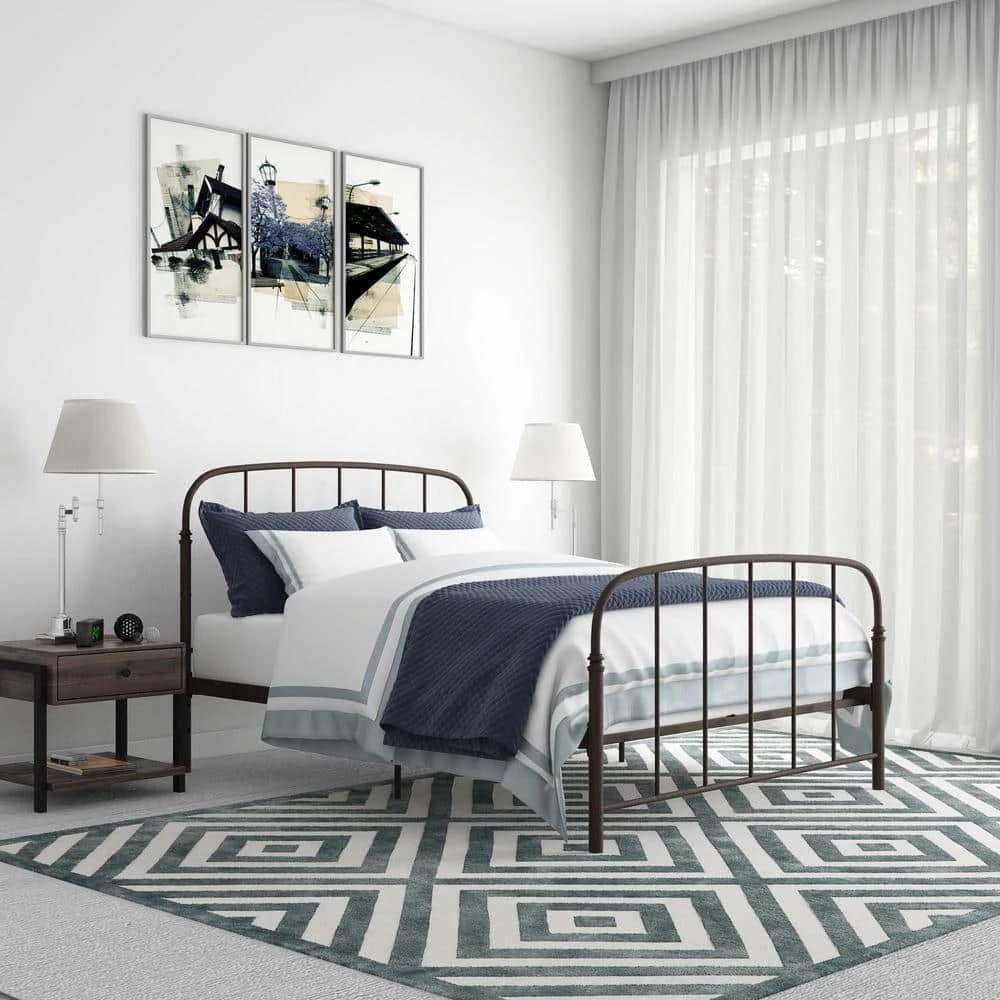 - Vintage design with a rounded headboard and footboard in a metal finish