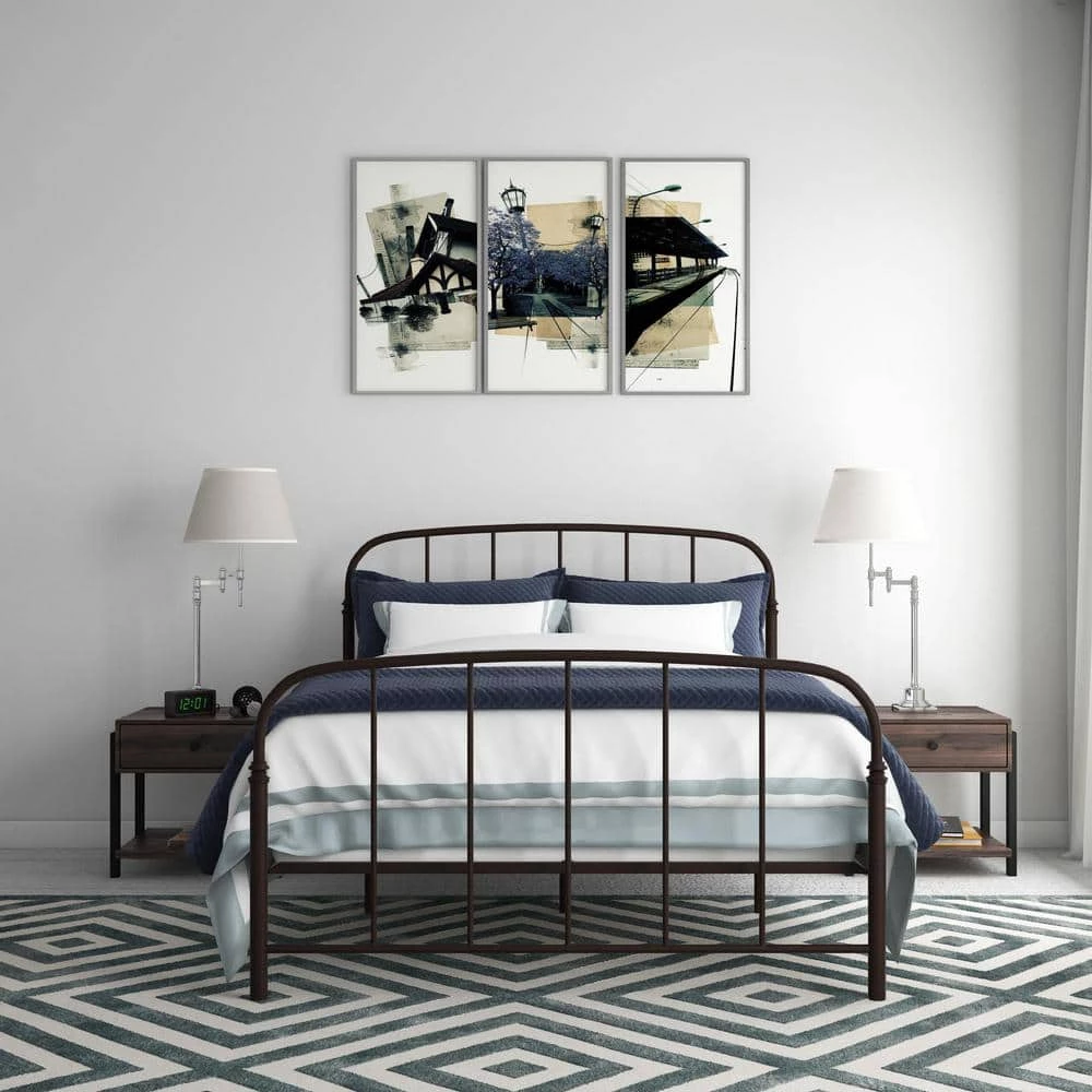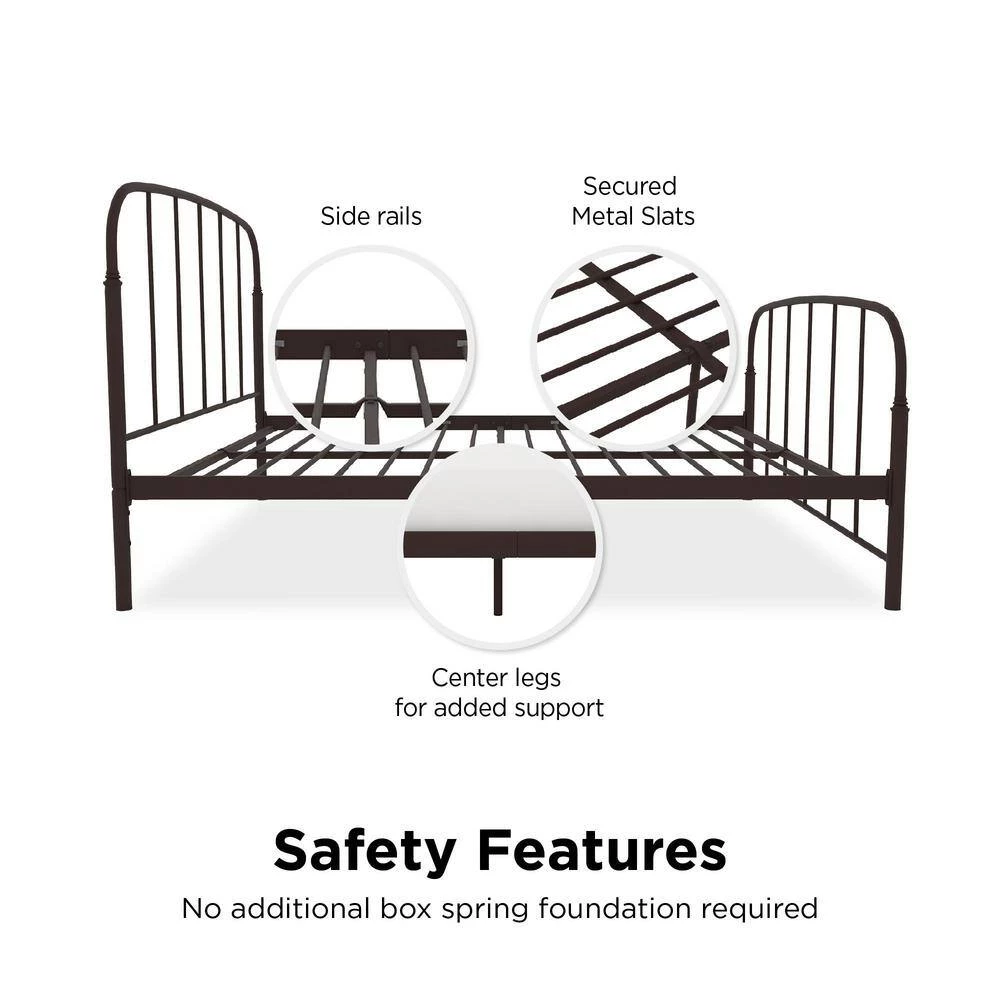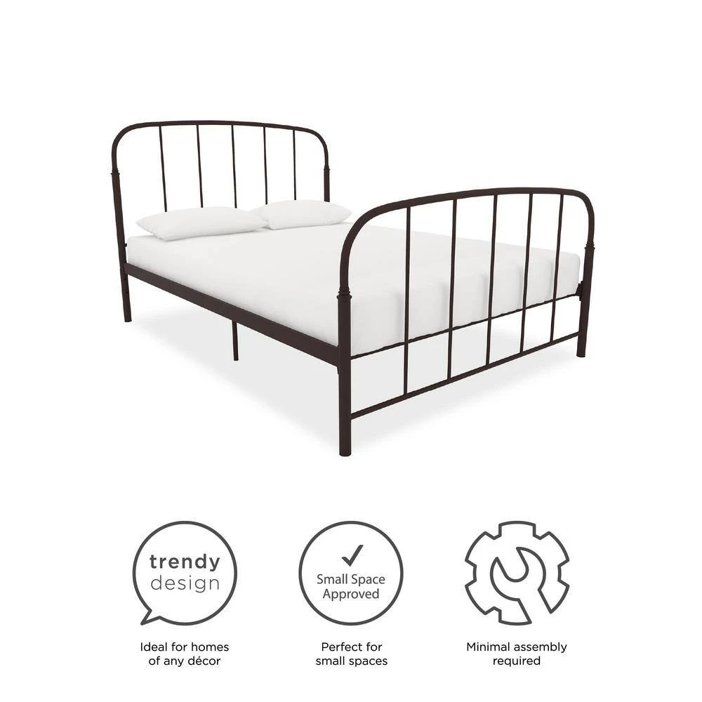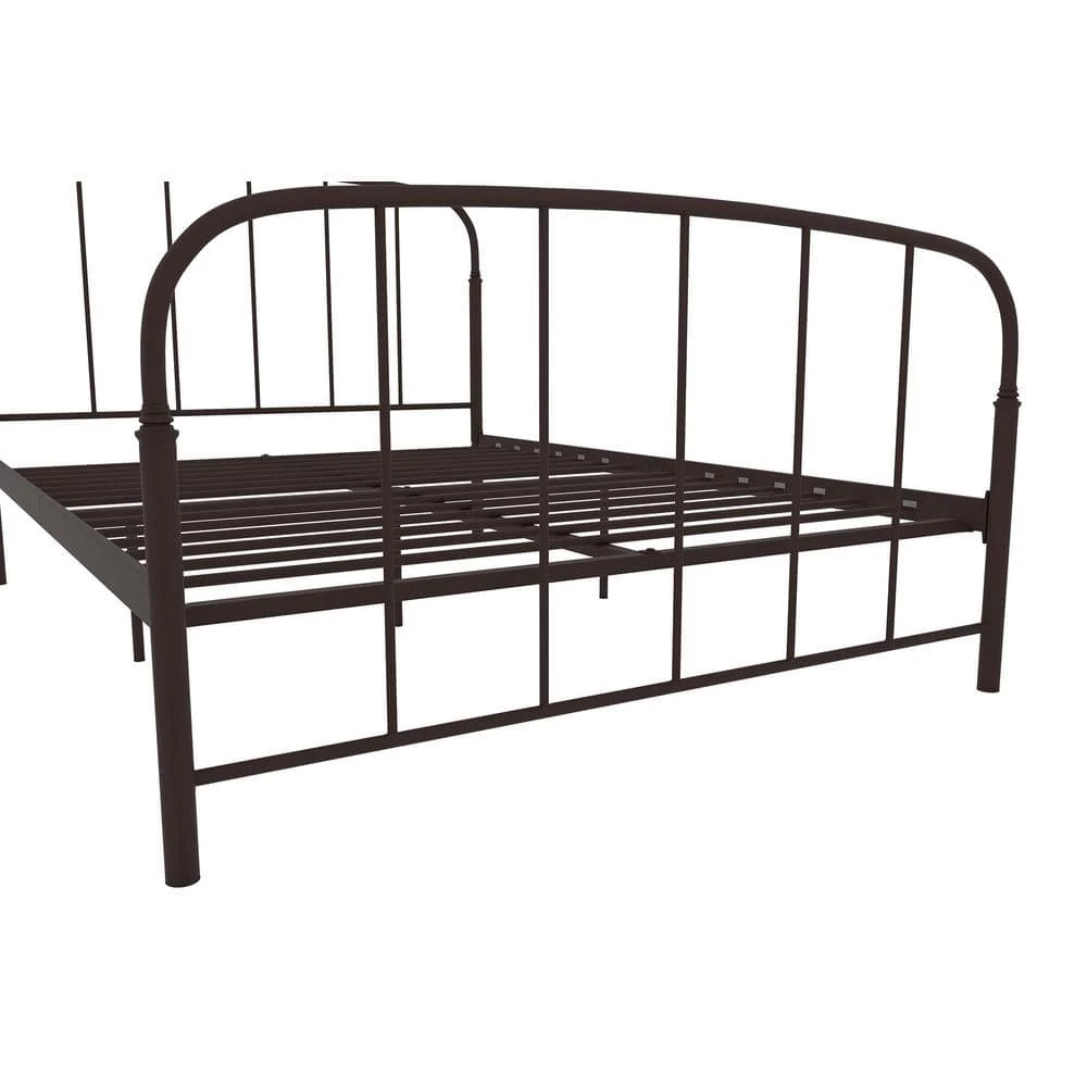Going to bed has never been more pleasing with the DHP Lilia Metal Bed. This classic bed frame has a clean-lined silhouette to perfectly fit in any room. Made with strong metal, the Lilia comes with secured metal slats so no foundation or box spring is required. The arched headboard and footboard add a stunning appeal to the timeless design of this piece, allowing you to mix and match your style whether it’s rustic or modern. With an ample under-bed clearance of 11 in., you can use the space to store away extra seasonal clothes and shoes, magazines and toys. Just liven up the Lilia with a comfortable mattress (sold separately), some colourful about solid sheets, a plush pillow and warm blanket and enjoy a sound rest. Available in twin, full, queen, king, the DHP Lilia Metal Bed will be a delightful addition to a master bedroom, a guest room, a child’s room, a college dorm room.