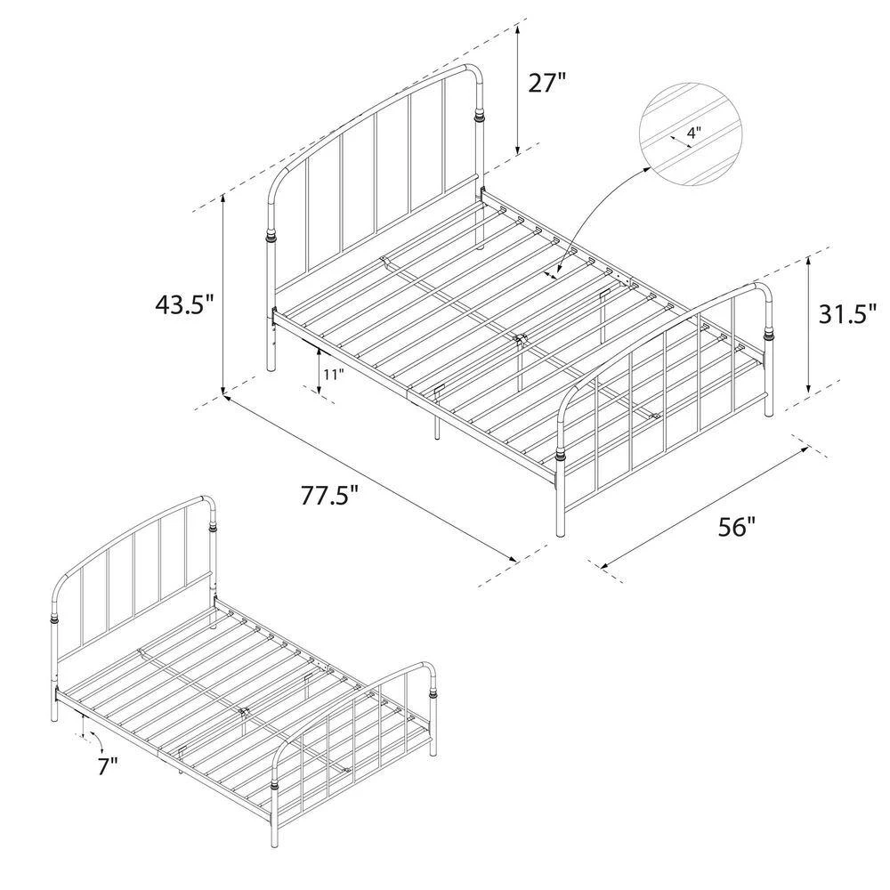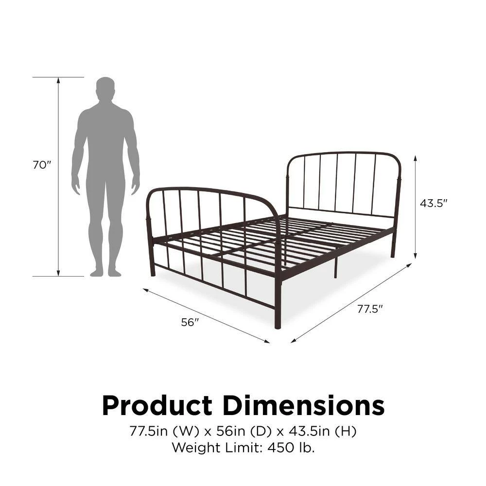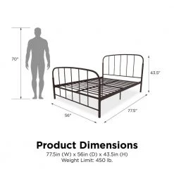 - Full size bed dimensions: 77.5 in. L x 56 in. W x 43.5 in. H, weight limit: 450 lb.