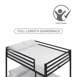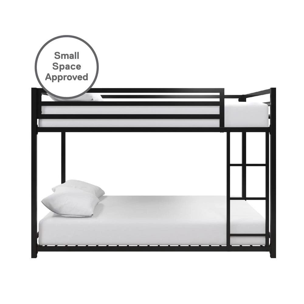 The DHP Mabel Metal Full/Full Bunk Bed is loved for its modern and compact design. This bunk bed features a well-engineered frame made with solid metal with an industrial loft flare that fits perfectly with any decor. Designed with safety in mind, the Mable comes with an integrated ladder for safe climbs up and down as well as full-length guardrails so your child can sleep soundly. This bunk bed also comes with secured metal slats that provide sturdy support for both sleepers while allowing the mattress to breathe and maintain its freshness for years to come. Available in multiple colors, this bed frame ships in one easy to handle box and assembles effortlessly.