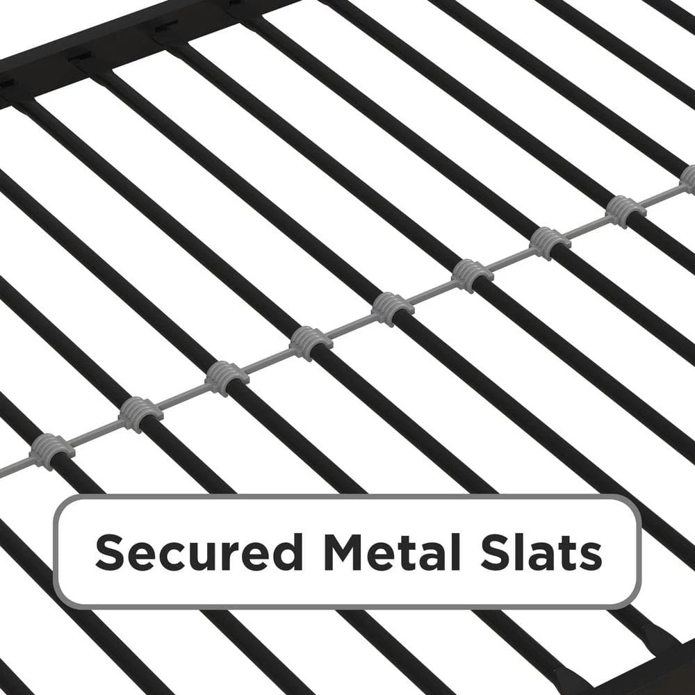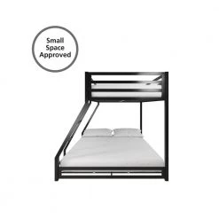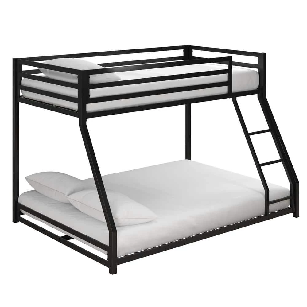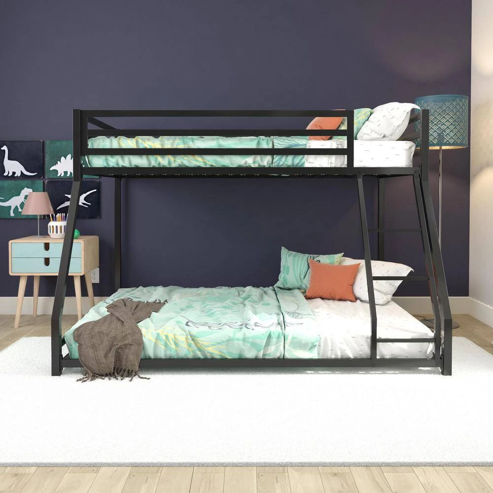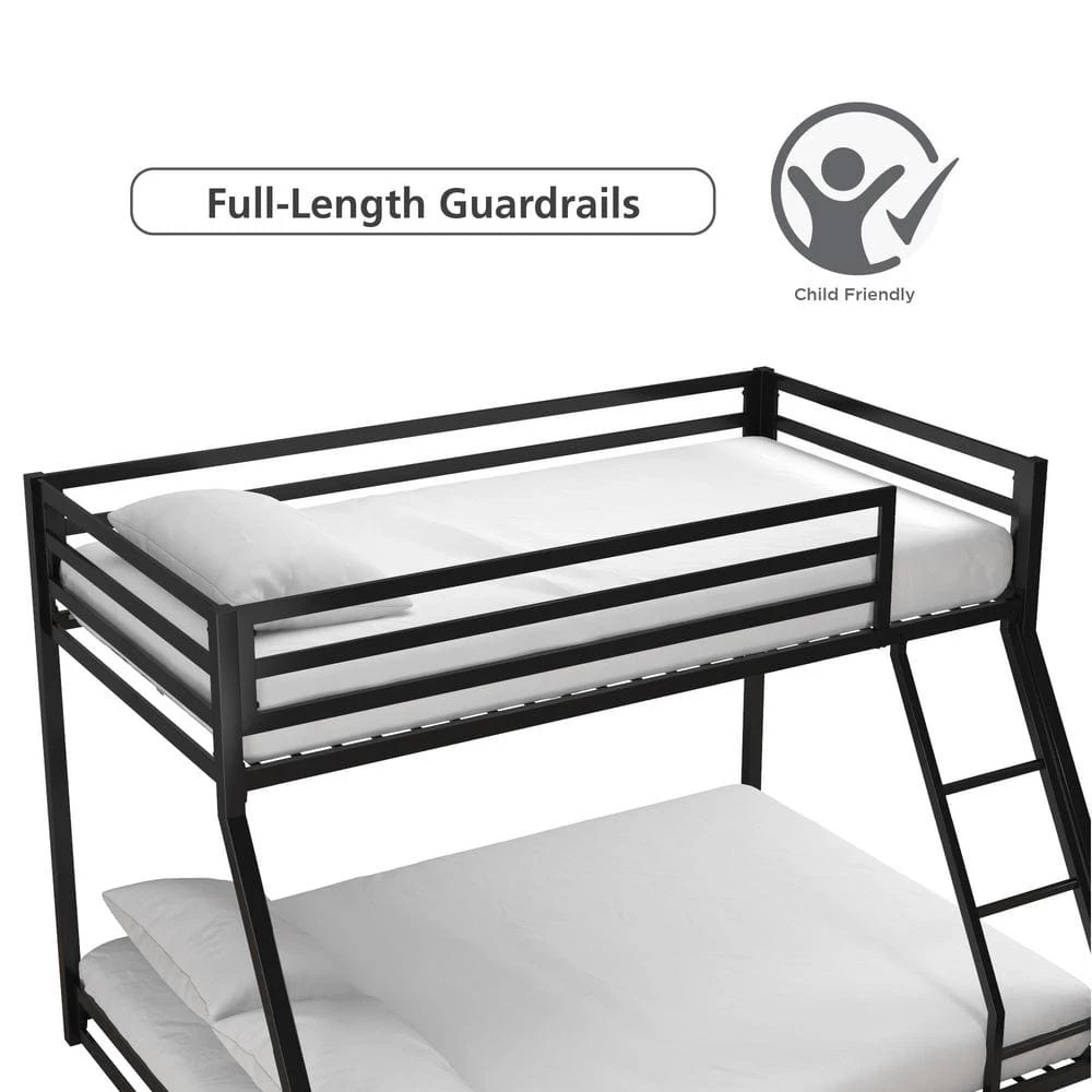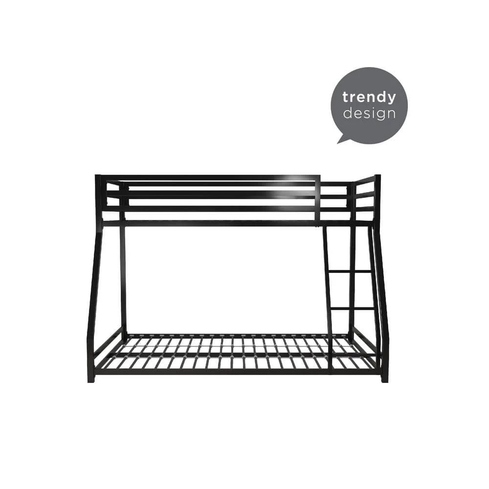 The DHP Mabel Metal Twin/Full Bunk Bed is loved for its modern and compact design. This bunk bed features a well-engineered frame made with solid metal with an industrial loft flare that fits perfectly with any decor. Designed with safety in mind, the Mable comes with an integrated ladder for safe climbs up and down as well as full-length guardrails so your child can sleep soundly. This bunk bed also comes with secured metal slats that provide sturdy support for both sleepers while allowing the mattress to breathe and maintain its freshness for years to come. Available in multiple colors, this bed frame ships in one easy to handle box and assembles effortlessly.