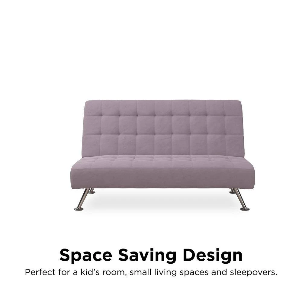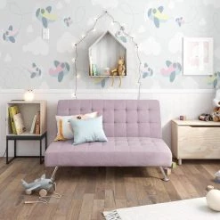 Make sleepovers fun and easy with our DHP Mabel Kids Sofa Futon. With its clever split back design, easily adjust the futon in either a sitting, lounging or sleeping position. This versatile and practical futon makes for the perfect addition when accommodating your children’s friends overnight. Designed with a sturdy frame, we promise to deliver you long lasting support and durability. Plus, we know how crazy sleepovers can get especially while watching movies with lots of late night snacks. It’s very luckily that something may spill on the futon, but no stress. Luckily this futon is easy to clean by simply using a damp cloth to remove the stains. Available in multiple fun colors: Pink, Teal, Black, Dark Blue and Lilac. Choose our DHP Mabel Kids Sofa Futon because who doesn’t like convenience and comfort.