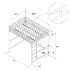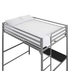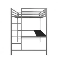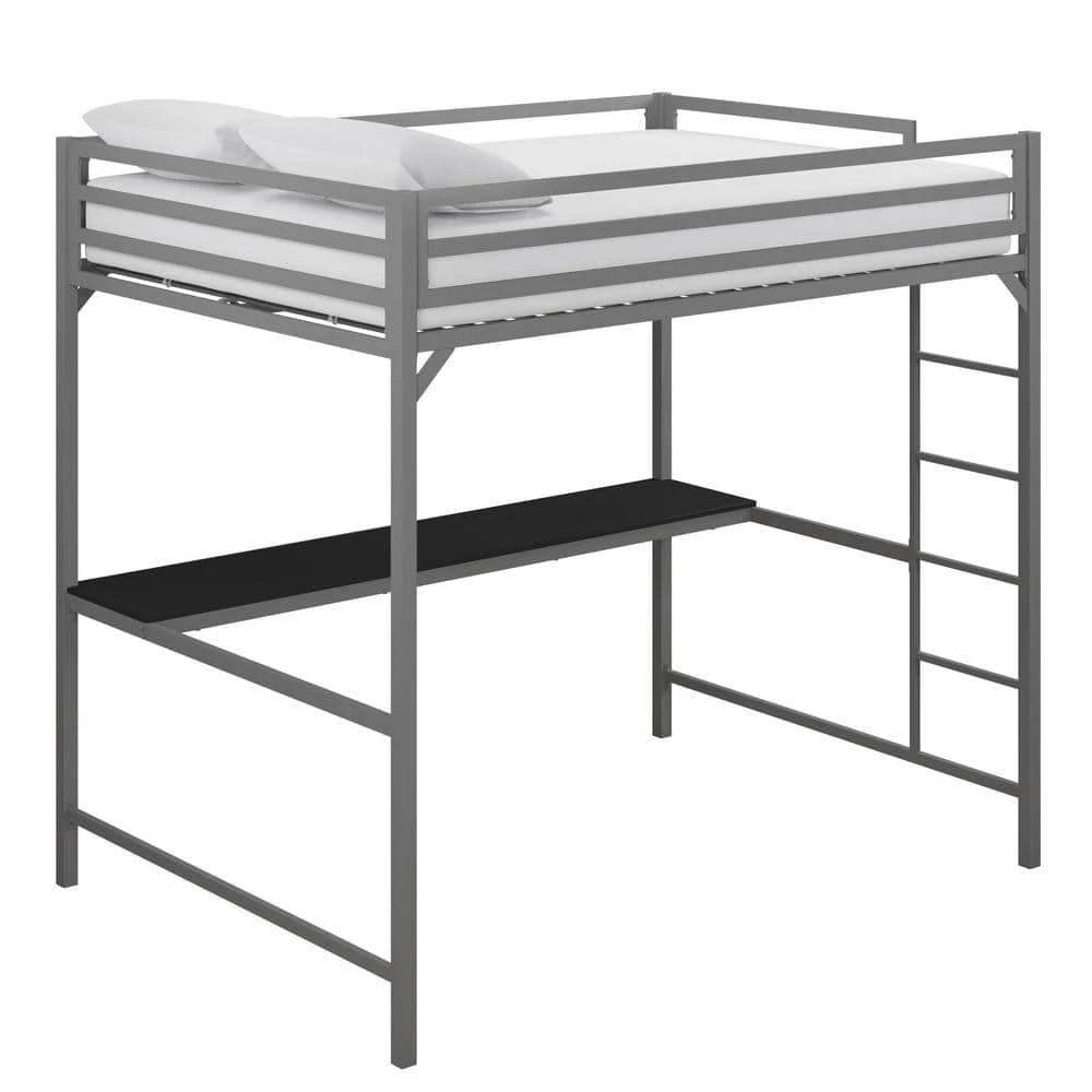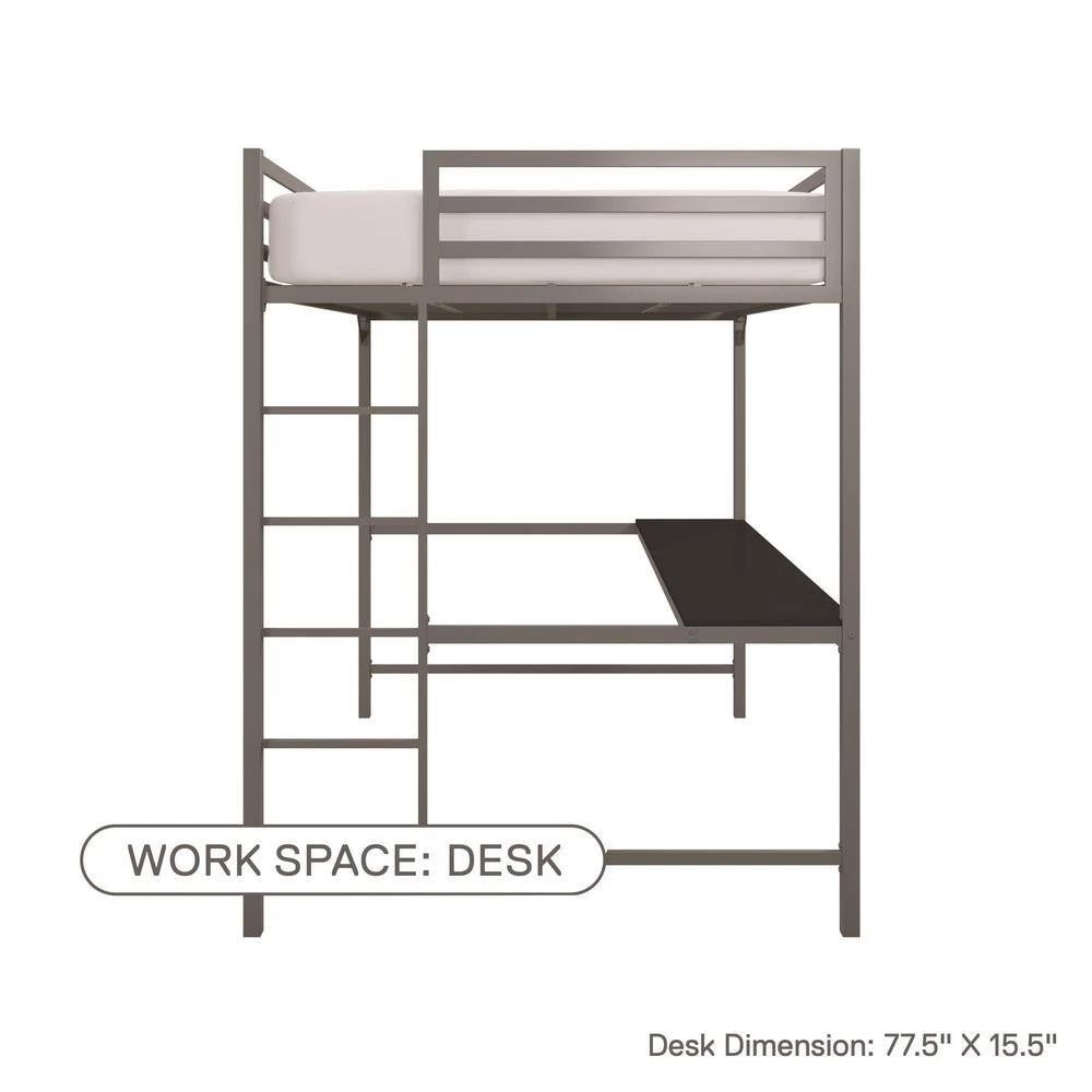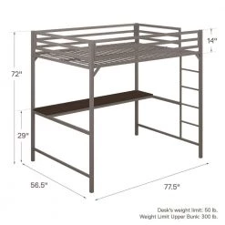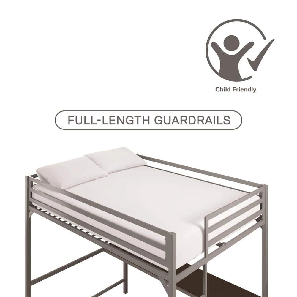 The DHP Mabel Metal Full Loft Bed with Desk is the ideal solution when you need to think vertical. This bed will surely bring joy and comfort to your little one with its sleek design and modern functionality. Crafted with a sturdy metal frame, the clean-cut silhouette will complement any modern bedroom. Equipped with full-length guard rails and an integrated ladder for the ultimate safety, the loft fits a standard twin size mattress of maximum 6 in. tall (sold separately). In addition, the bed comes with secured heavy-duty metal slats that provide ample support, stability and air circulation for the mattress. With an expansive under-bed clearance, the loft bed maximizes bedroom space. It also includes a desk that turns the space into a clever workstation, a reading nook or a craft area. Available in multiple colors, the DHP Mabel Metal Full Loft Bed with Desk will be a great sleeping companion for your little one for years to come.
