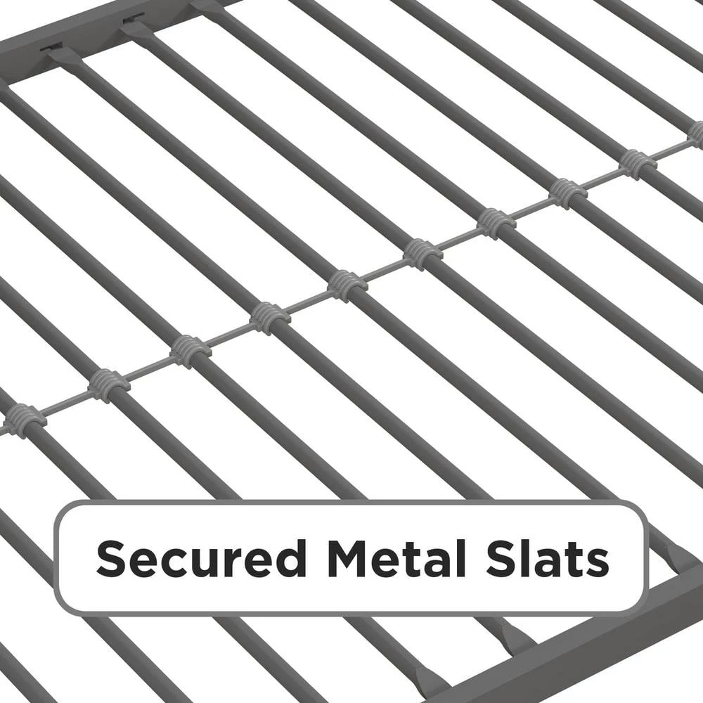 - Upper bunk is equipped with secured metal slats that provide ample support and 14 in. full-length guardrails for ultimate safety