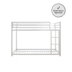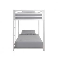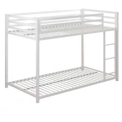 The DHP Mabel Metal Twin/Twin Bunk Bed is loved for its modern and compact design. This bunk bed features a well-engineered frame made with solid metal with an industrial loft flare that fits perfectly with any decor. Designed with safety in mind, the Mable comes with an integrated ladder for safe climbs up and down as well as full-length guardrails so your child can sleep soundly. This bunk bed also comes with secured metal slats that provide sturdy support for both sleepers while allowing the mattress to breathe and maintain its freshness for years to come. Available in multiple colors, this bed frame ships in one easy to handle box and assembles effortlessly.