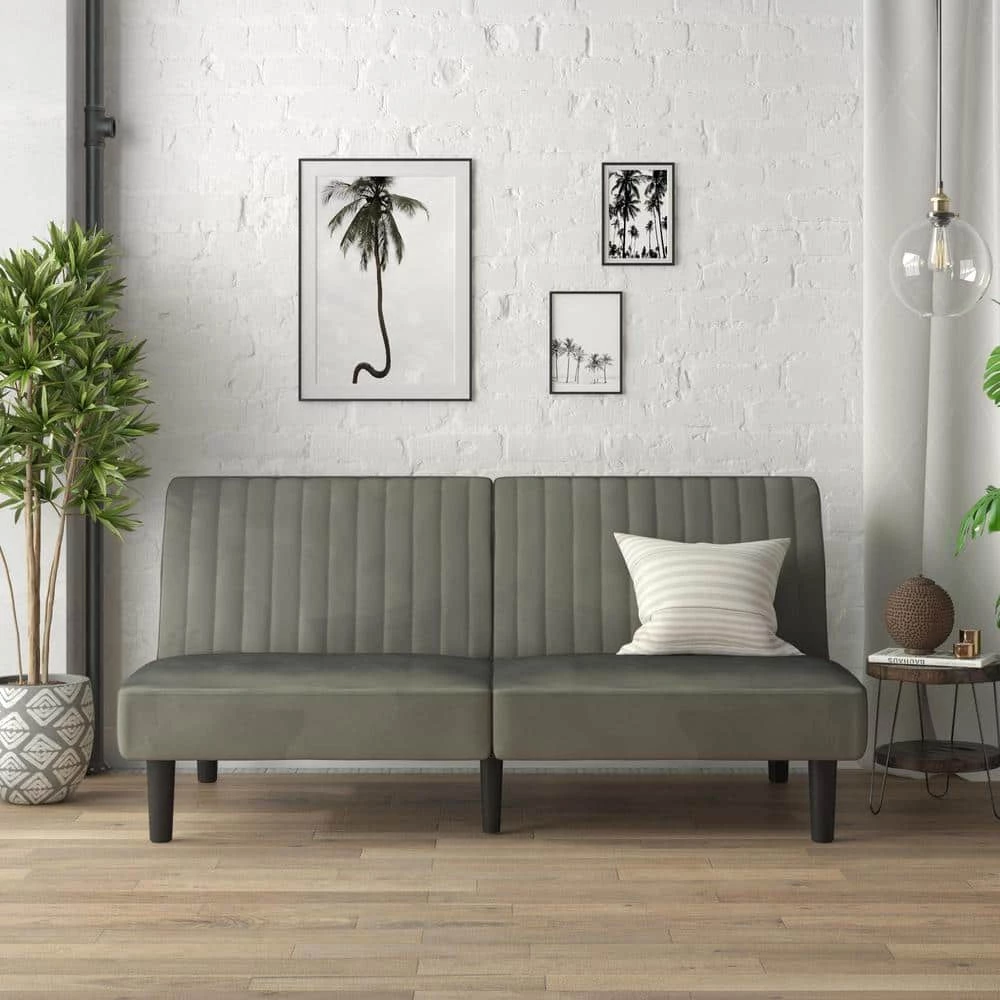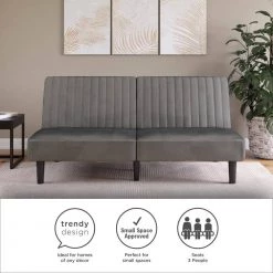 There’s no place like home, especially an attractively well-put together home. With the DHP Maeva Futon, you can create the modern space that you’ve always wanted with a dynamic piece of furniture that functions as a sofa, bed, and lounger. Place it in your living room, home office, or guest room to utilize every square foot of your space efficiently. A small space solution, the Maeva mixes smart design with practical convenience by featuring a split-back design and reclinable backrest that lets you choose between sitting, lounging or sleeping positions – perfect for that unexpected visit from your relative who needs comfortable overnight accommodations. Crafted with a sturdy wood frame and strong plastic legs, the Maeva is a style leader with its vertical backrest stitching that offers long-lasting appeal and durability. Offered in various colors, choose either faux leather or velvet upholstery based on your decor preferences.