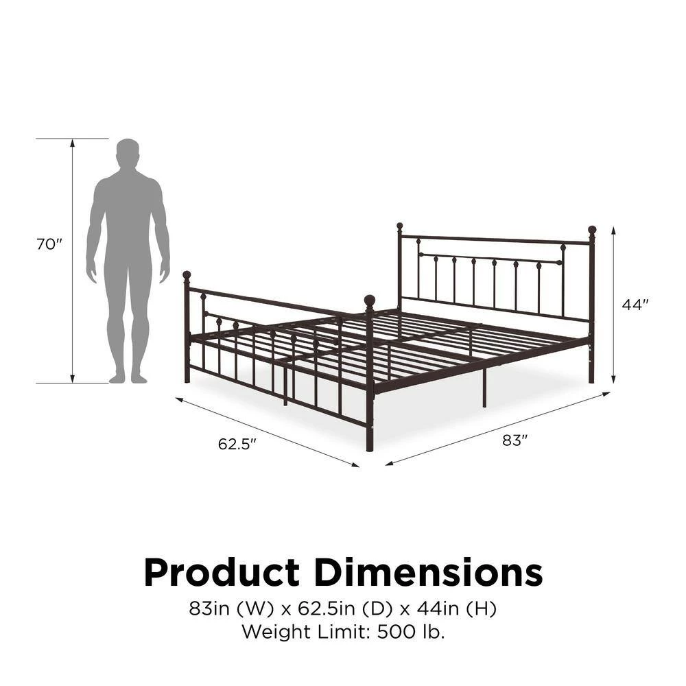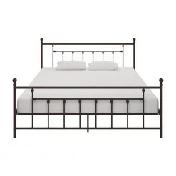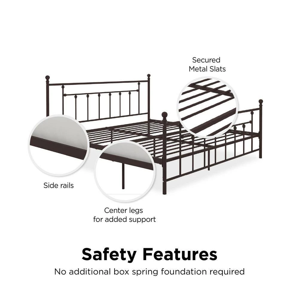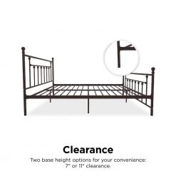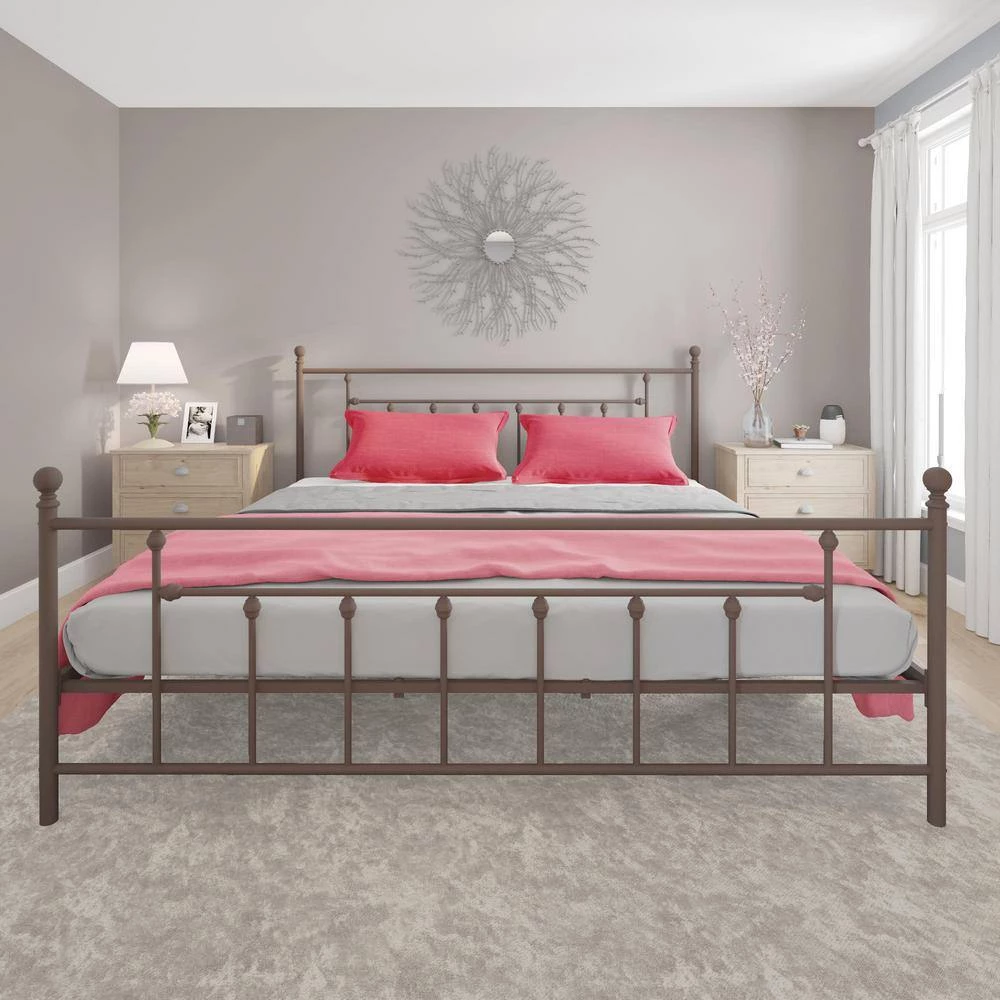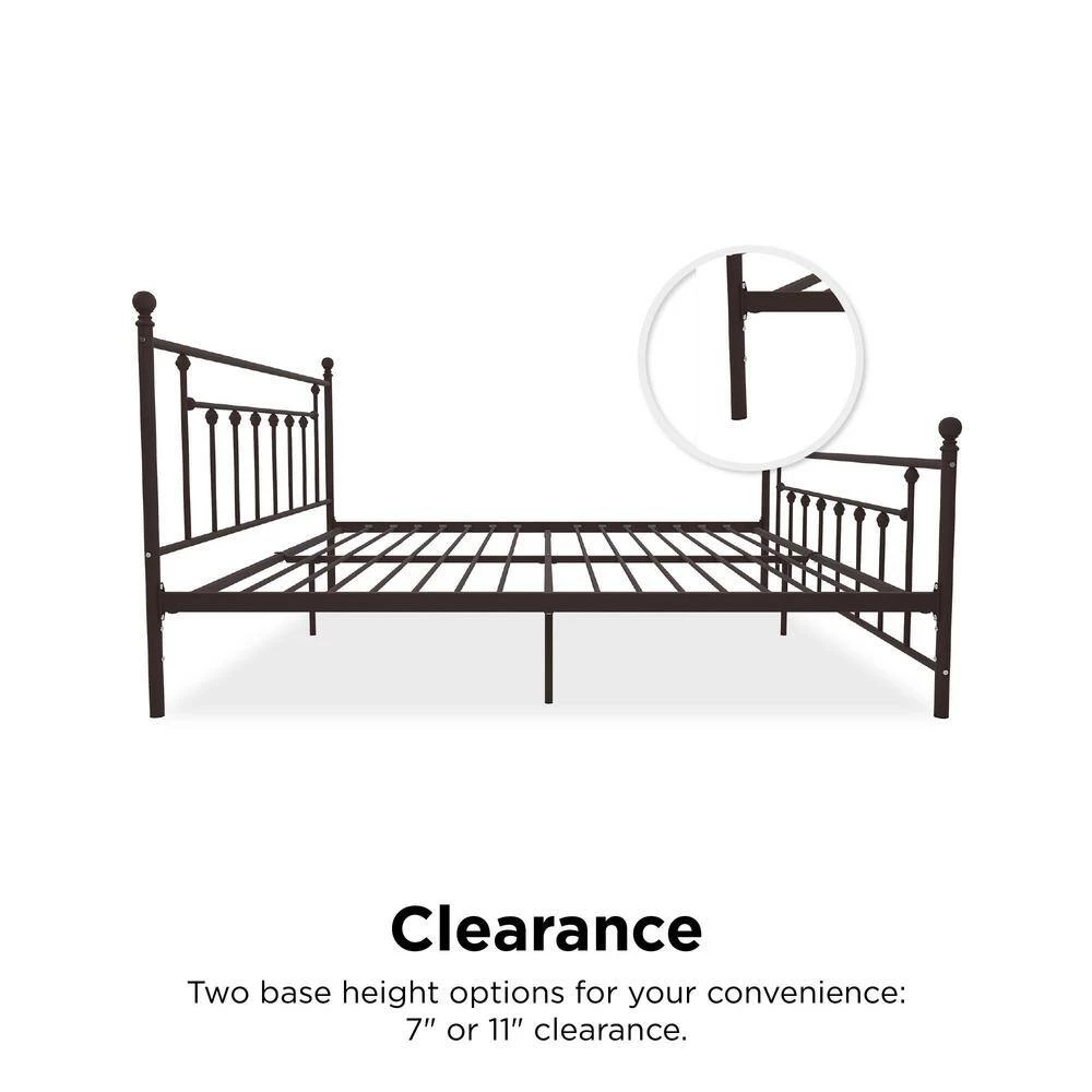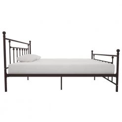 The DHP Mia Metal Bed offers sophistication in a Victorian design: it combines straight lines with rounded finials. It is design in a sturdy metal base that provides ample support and durability; it also includes metal slats that allow air to circulate under the bed to help keep your mattress fresh for longer, without needing a box spring. The Mia has extra legs and side rails that add structural strength so you can sleep soundly and it offers two height options so that you can adjust under-bed clearance to your convenience to store goods underneath.
