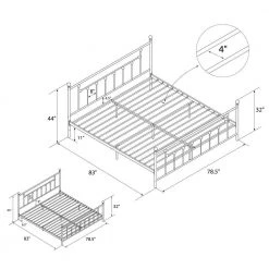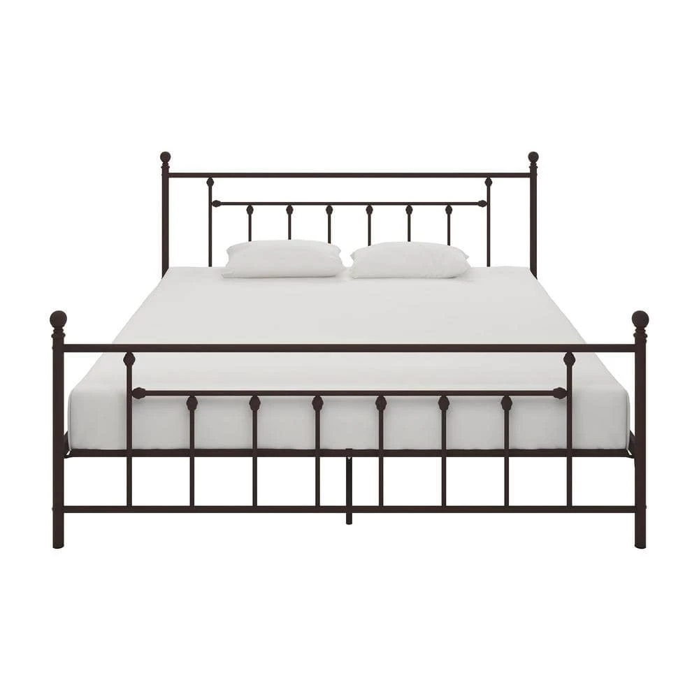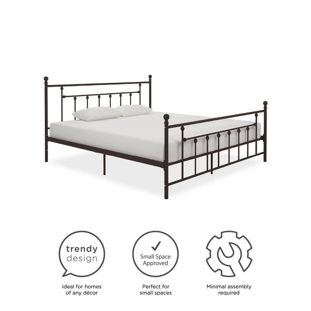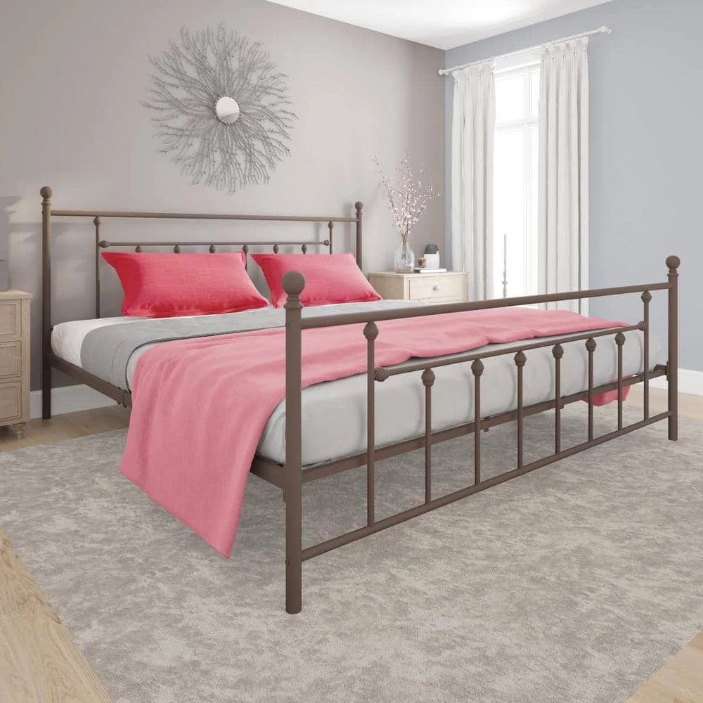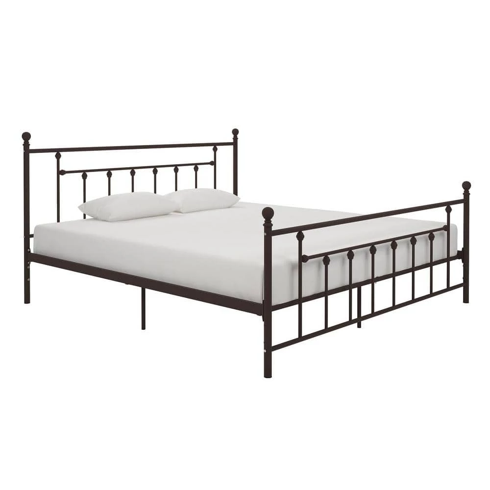 The DHP Mia Metal Bed offers sophistication in a Victorian design: it combines straight lines with rounded finials. It is design in a sturdy metal base that provides ample support and durability; it also includes metal slats that allow air to circulate under the bed to help keep your mattress fresh for longer, without needing a box spring. The Mia has extra legs and side rails that add structural strength so you can sleep soundly and it offers two height options so that you can adjust under-bed clearance to your convenience to store goods underneath.