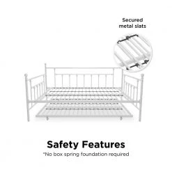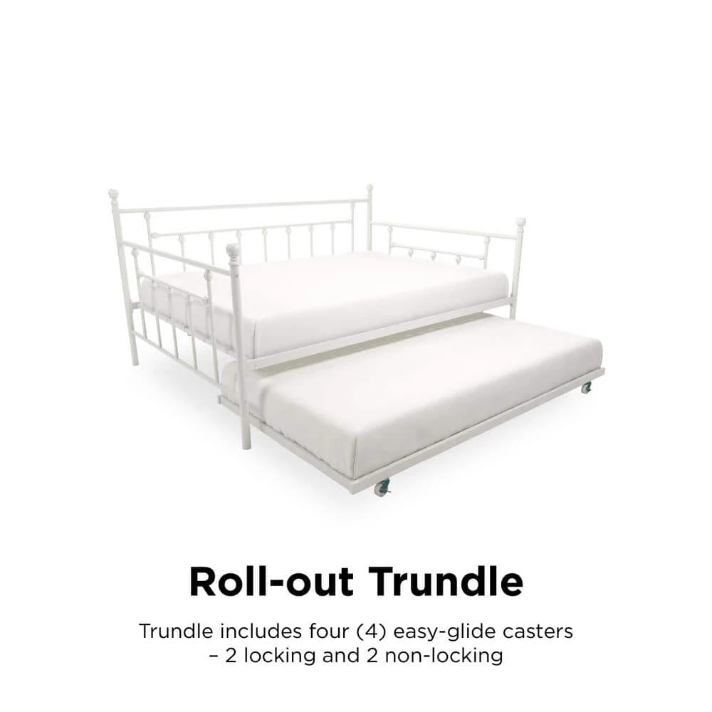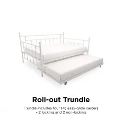 - Sturdy metal frame and slats on the daybed the trundle that deliver additional support and durability. trundle includes four (4) easy-glide casters – 2 locking and 2 non-locking
