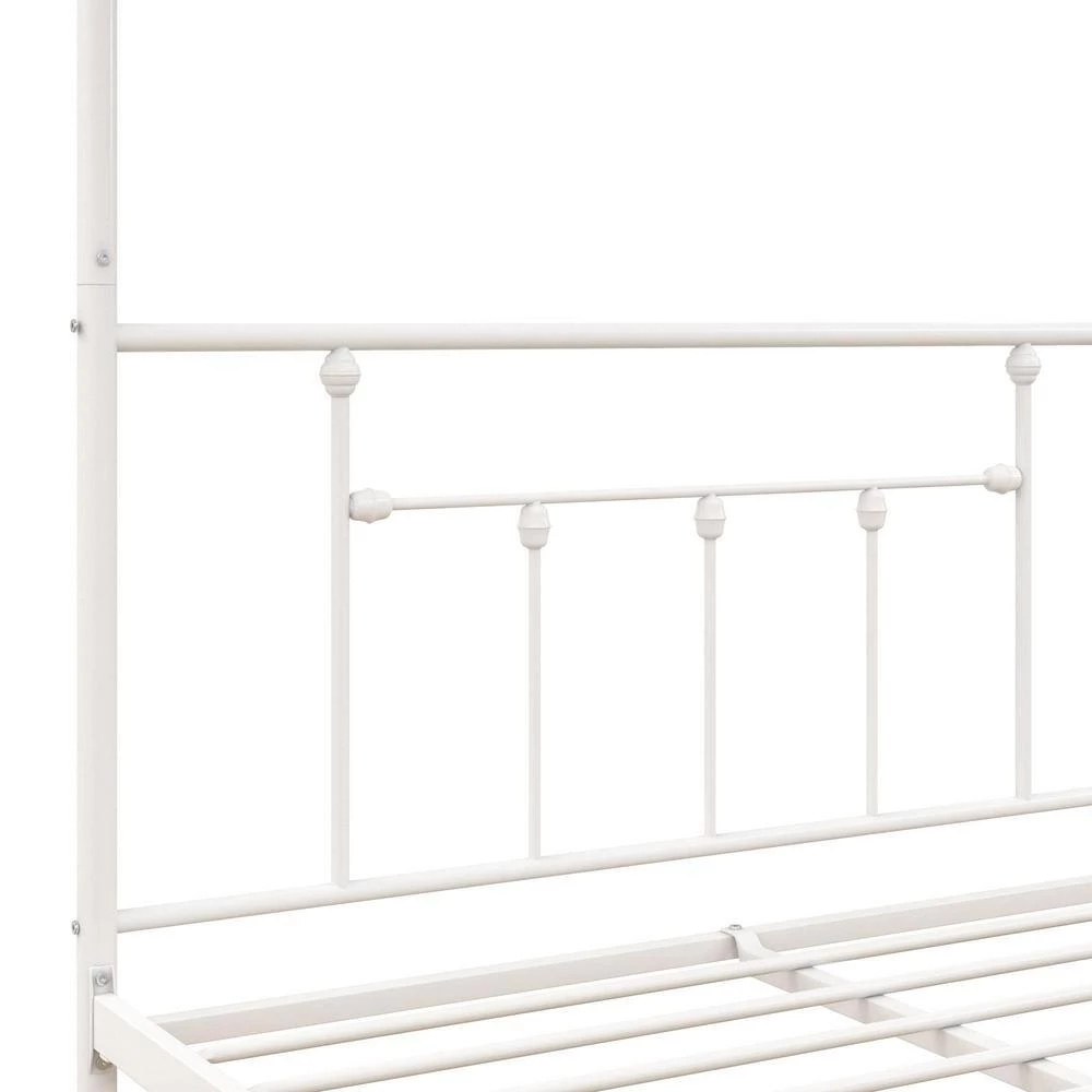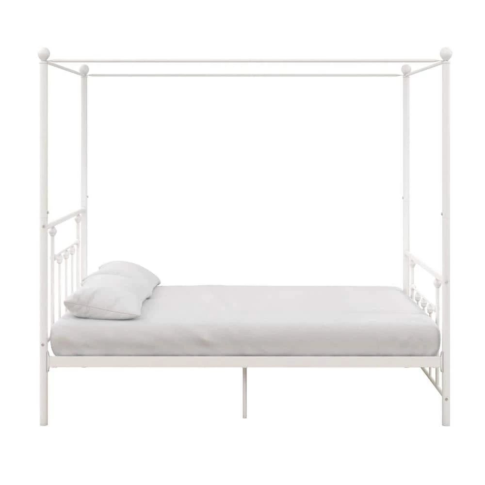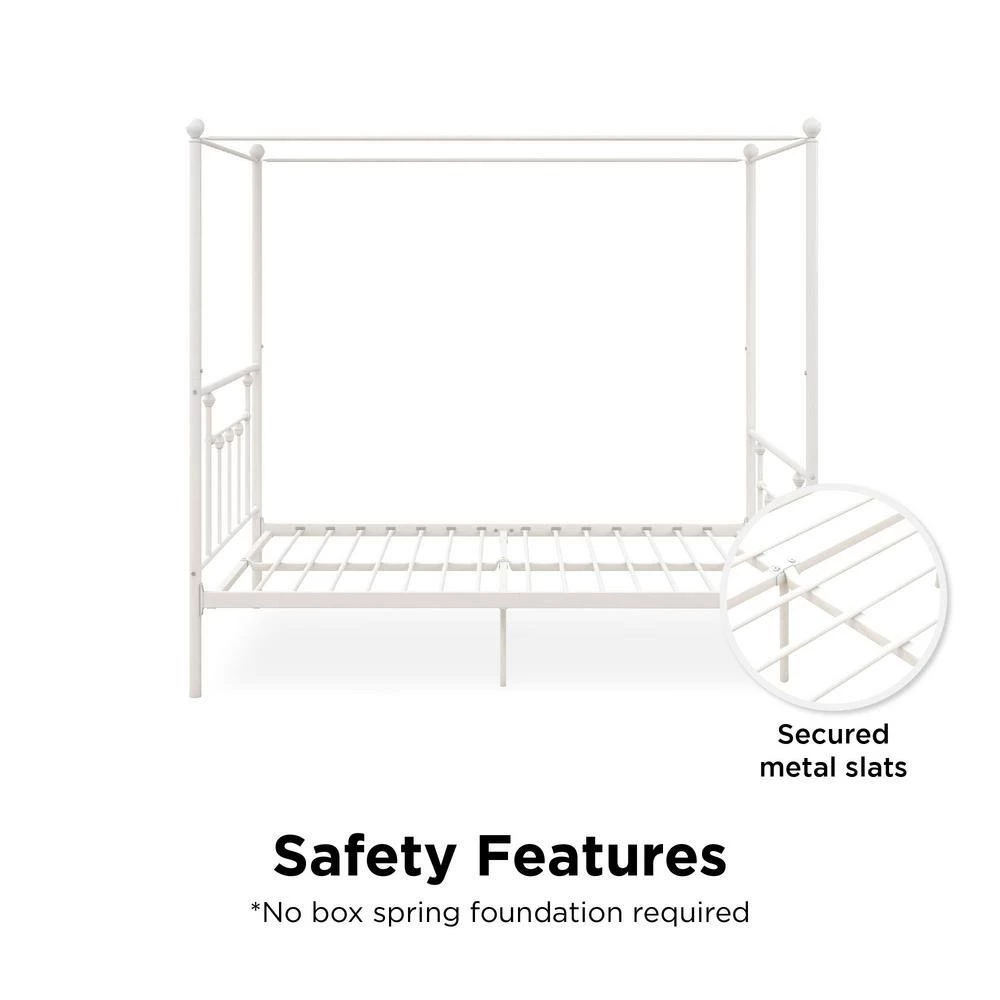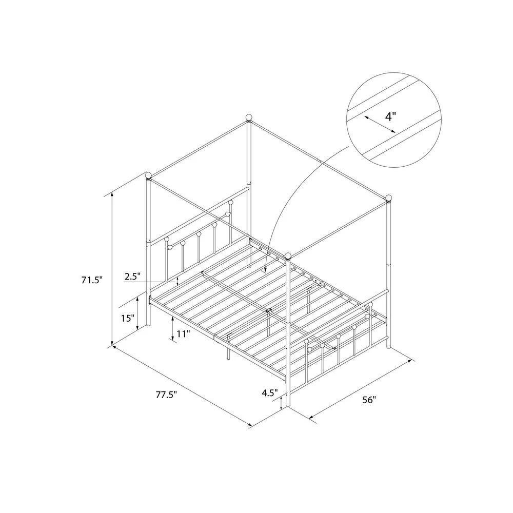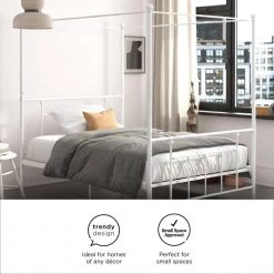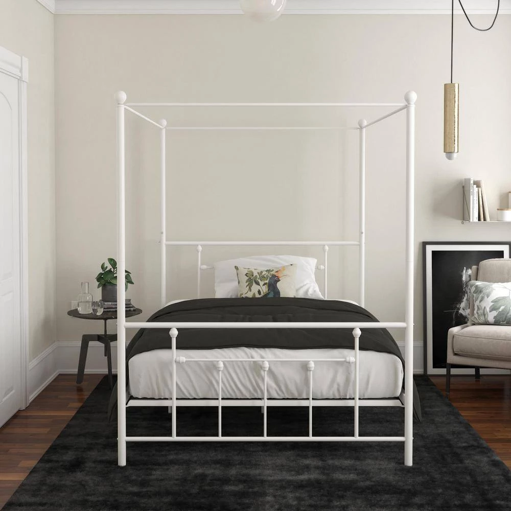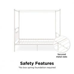 The DHP Mia Canopy Bed will quickly become the centerpiece of your bedroom. Designed with beautiful elegant detailing, the Mia will create your bedroom into a cozy oasis. Constructed with premium quality, this canopy bed features a metal slat support system that guarantees long-lasting support and durability. It accommodates a standard twin size mattress (sold separately) and does not require any additional foundation. Ships in one easy to handle box and assembles quickly. Available in various sizes and multiple colors. Get ready to enjoy countless nights lounging in bed and binge watching your favorite television series – you can thank us later.