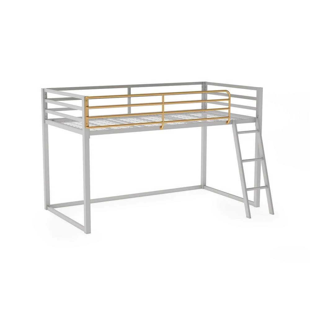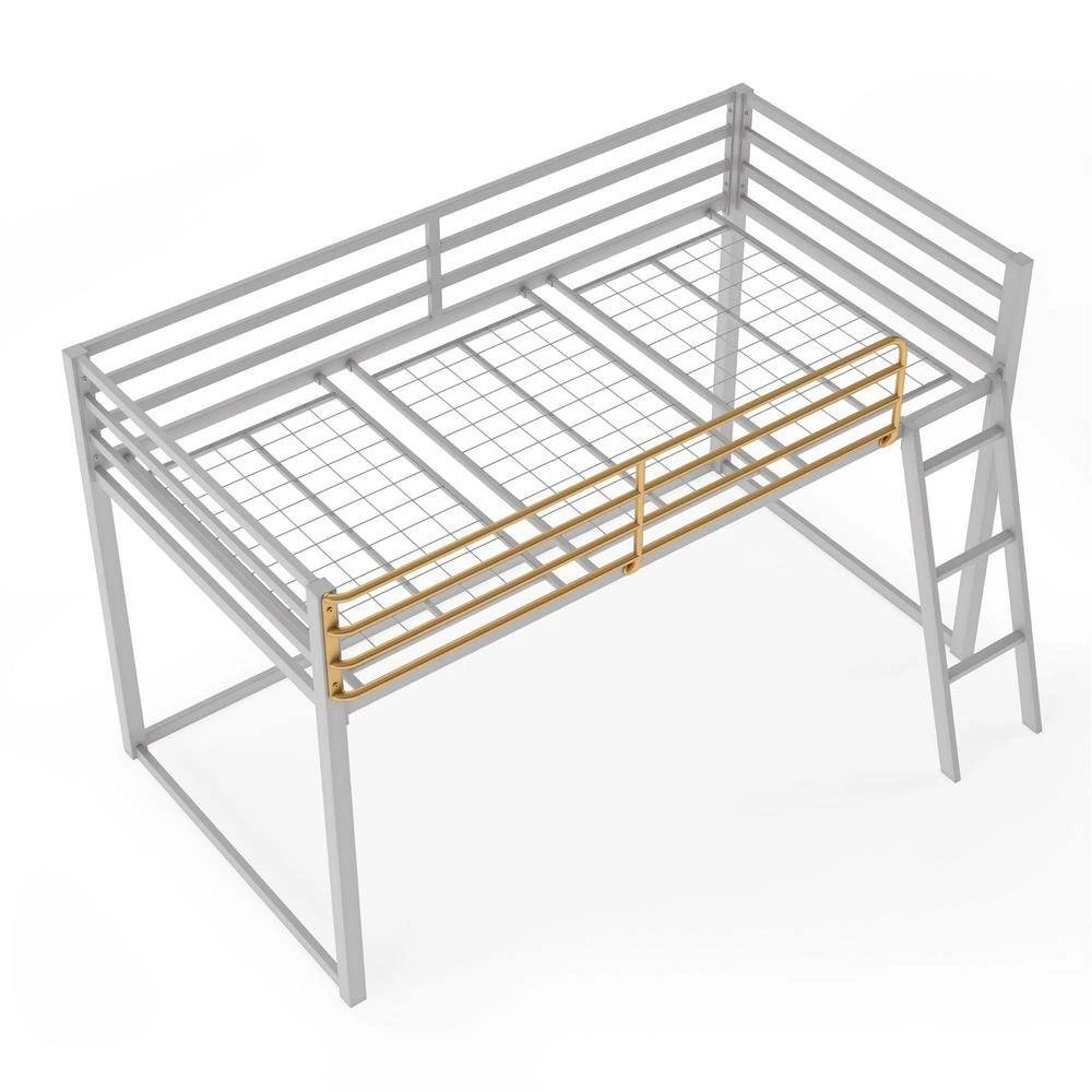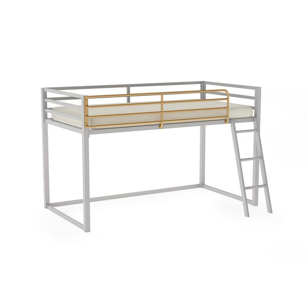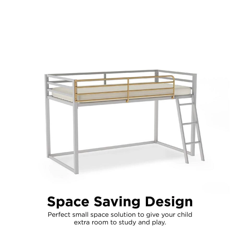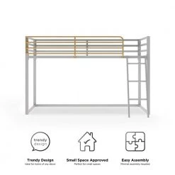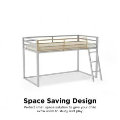 - Dove gray, with a pop of gold, this loft bed is the perfect small space solution to give your child extra room to study and play