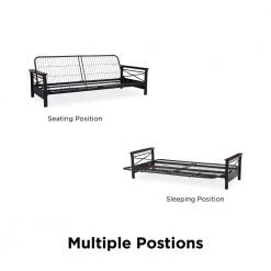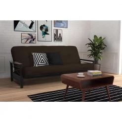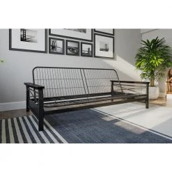 The DHP Nella Metal Futon Frame with Wood Armrest is a chic and neat piece that will provide you with utmost comfort for the greatest value. Made in strong metal, it has wood armrests that add style to your room. The frame converts effortlessly from sofa into a full size bed, making it perfect when hosting overnight guests. This frame can be paired with any of DHPs futon mattresses (sold separatel). The Nella has a versatile style that can match classic decor or an industrial loft vibe.
