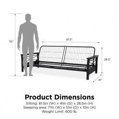 - Accommodates a 6 in. or 8 in. futon mattress, sold separately