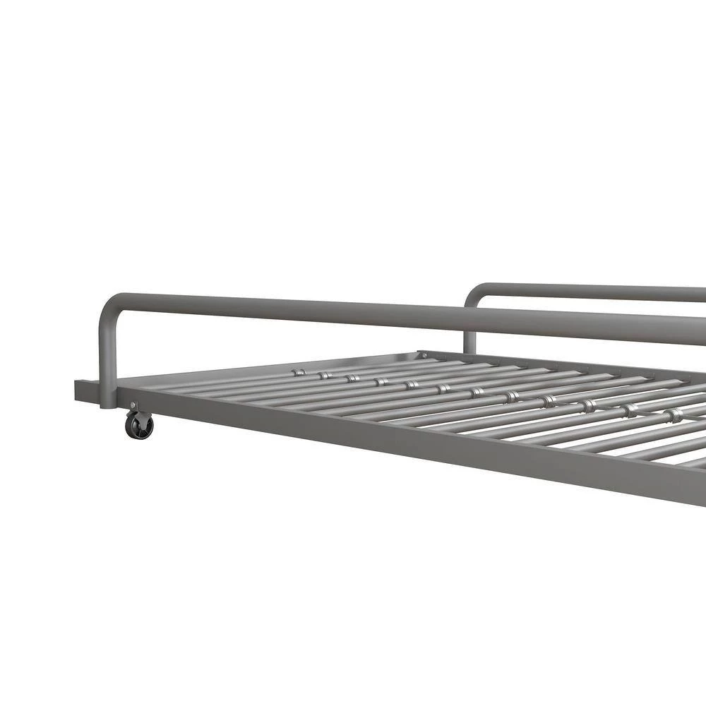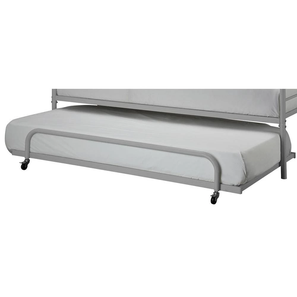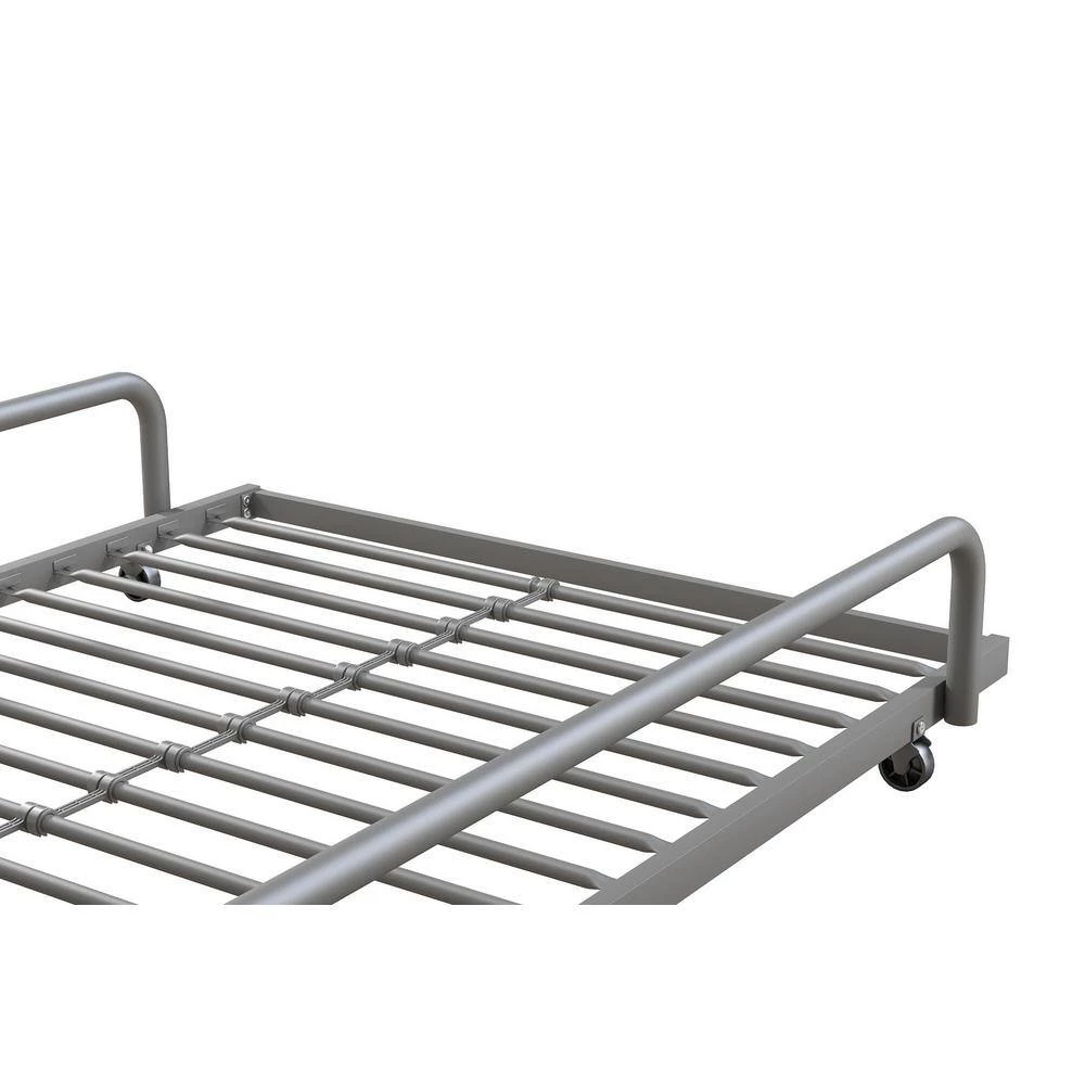 - Contemporary metal frame that fits perfectly under matching metal daybed