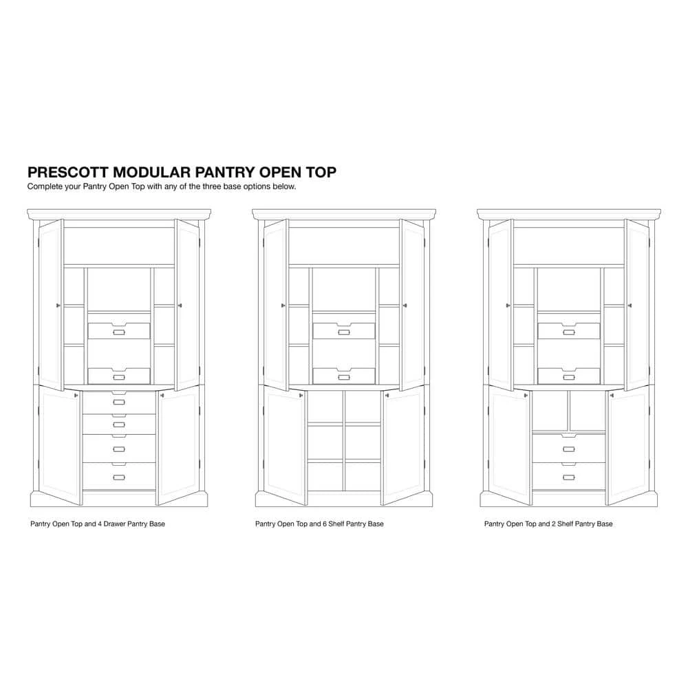 - Designed to sit atop any Prescott modular pantry base cabinet, sold separately