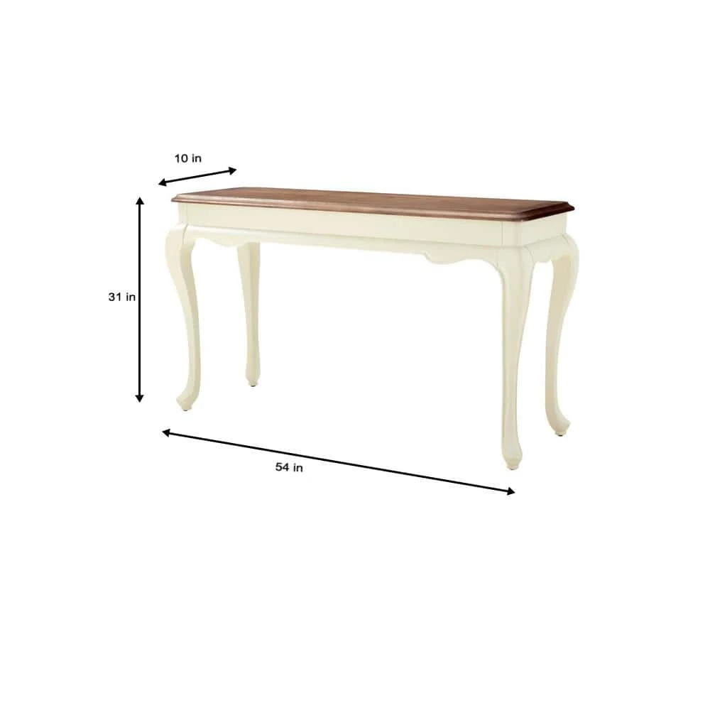 Refine your space with this Provence 54 in. Ivory/Ash Brown Standard Rectangle Wood Console Table. It features a vintage aesthetic design and a birch veneer top in ash grey. This works well in a foyer, hallway or various other spaces around your home.