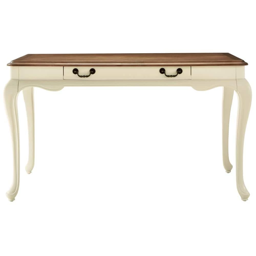 Channel your inner writer with our nostalgic, vintage-style Provence Ivory Writing Desk. This elegant wood writing desk boasts 19th century style with contemporary functionality, complete with a built-in center drawer. At 24 in. deep, this desk provides ample room for writing, studying or working, making it the perfect addition for your office, study or general work space. Pair this desk with other Provence pieces for a cottage-style feel that just might inspire you to write the next great novel.
