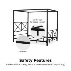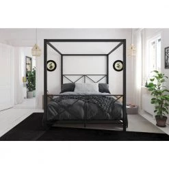 When it comes to comfort and style, the DHP Robin Canopy Bed has them all. The modern sleek design is showcased through the well-edged posters and crisscross embellishment on the headboard and footboard. Crafted in sturdy metal frame, the Robin comes with a metal slats system that provide durable support and allow air to flow freely beneath the mattress, keeping it fresher for years to come. Get your creative juices flowing and customize the canopy bed with some sheer curtains to invite the sunlight, or some bright floral patterned curtain for a breezy tropical look – endless possibilities await. Available in classic black, white or regal gold, the DHP Robin Canopy Bed is certainly a stunning centerpiece to any bedroom.