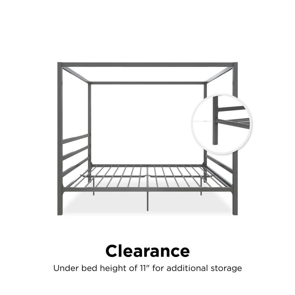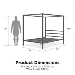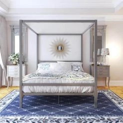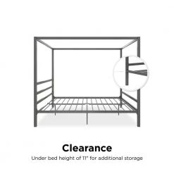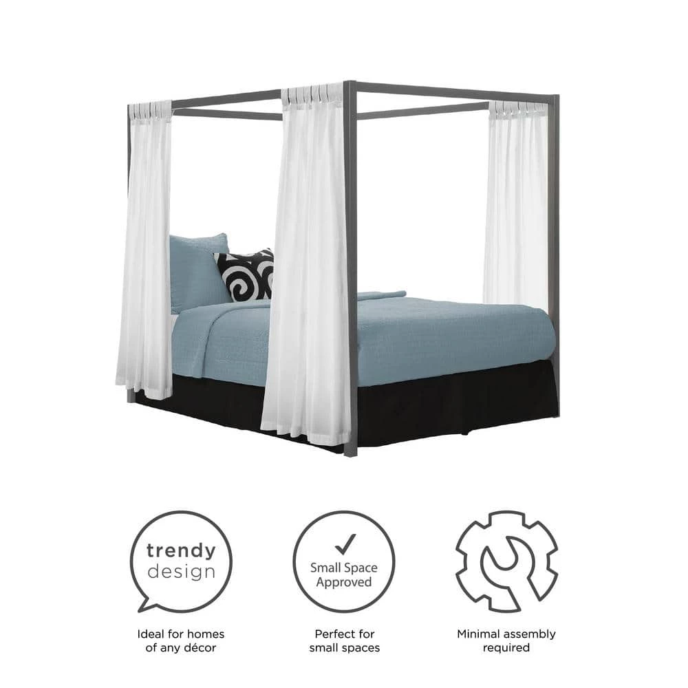 Make a statement in your bedroom with the Rory Metal Canopy Bed. It has a modern design with a built-in headboard. The frame has been sturdily constructed making is stable and durable for your mattress. The Rory comes with metal slats which allows air to flow freely beneath your mattress, maintaining its freshness for years to come. No need for a box spring or foundation. Use this canopy bed as the centerpiece of your little ones room or adapt the look with some playful designed drapes to provide them their own magical forte. Available in elegant pink, white, and grey, this bed will add coziness to your sweet home in no time.