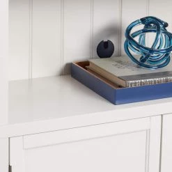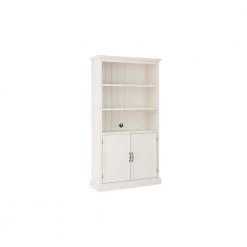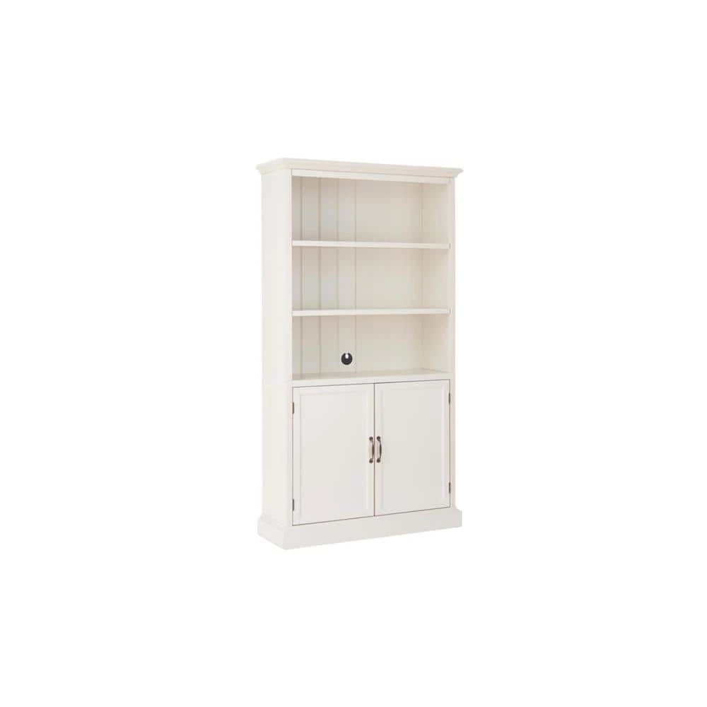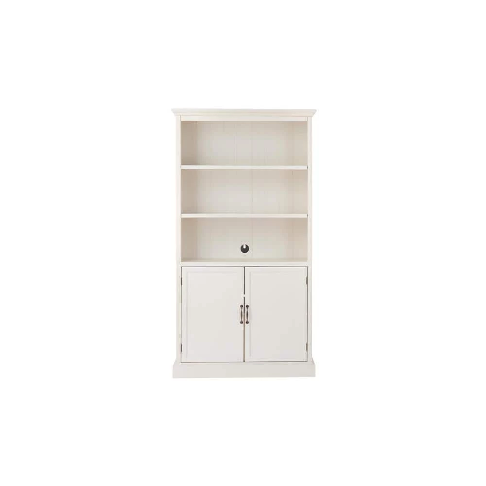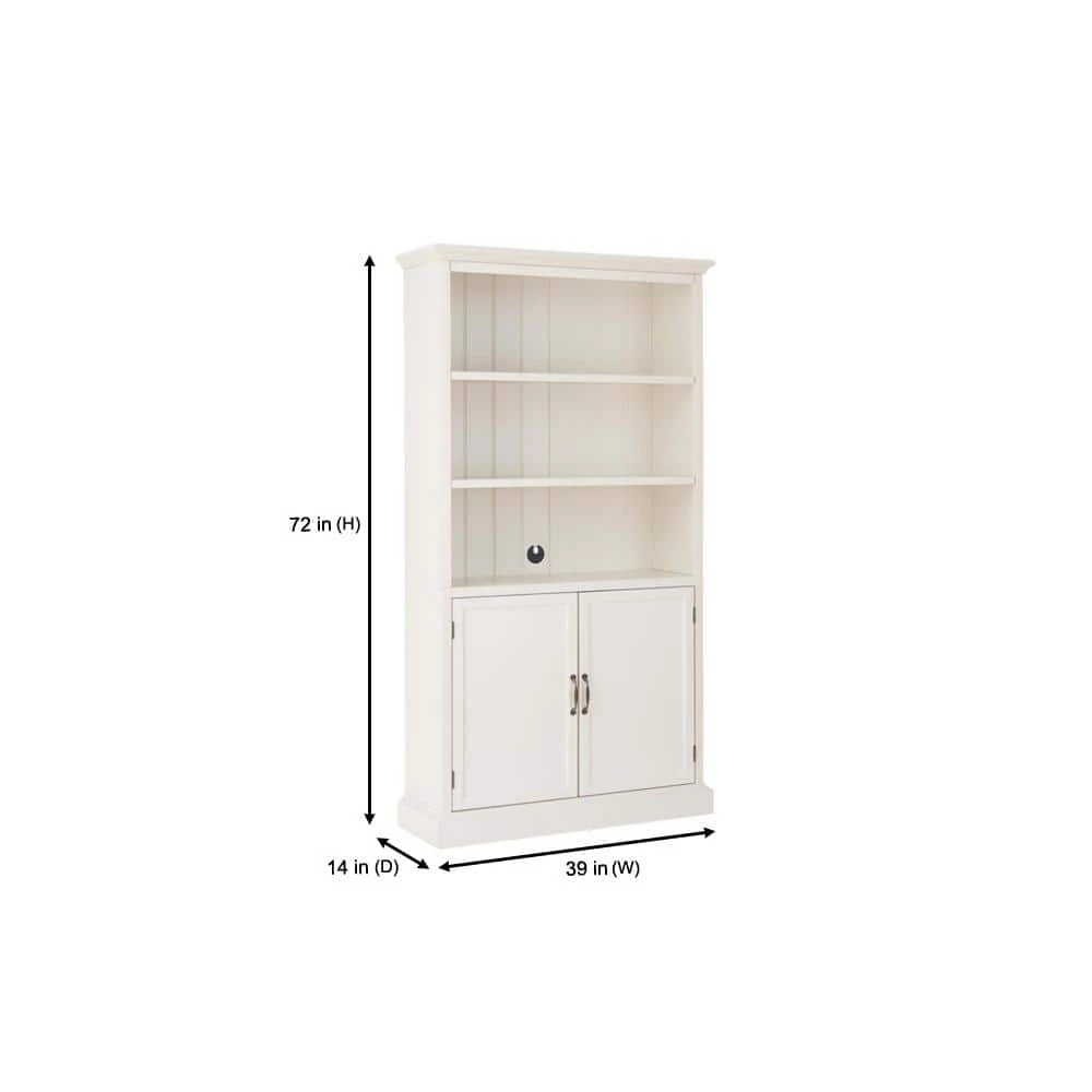 Cabinetry details and a bright finish give our Home Decorators Collection Royce bookcase a classic presence. The wood bookcase is a home office staple that’s great to have when extra storage is needed. Three shelves, including one with a cutout, hold electronics, books and supplies. Two file drawers house folders and paperwork.
