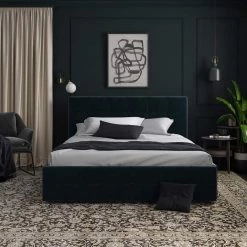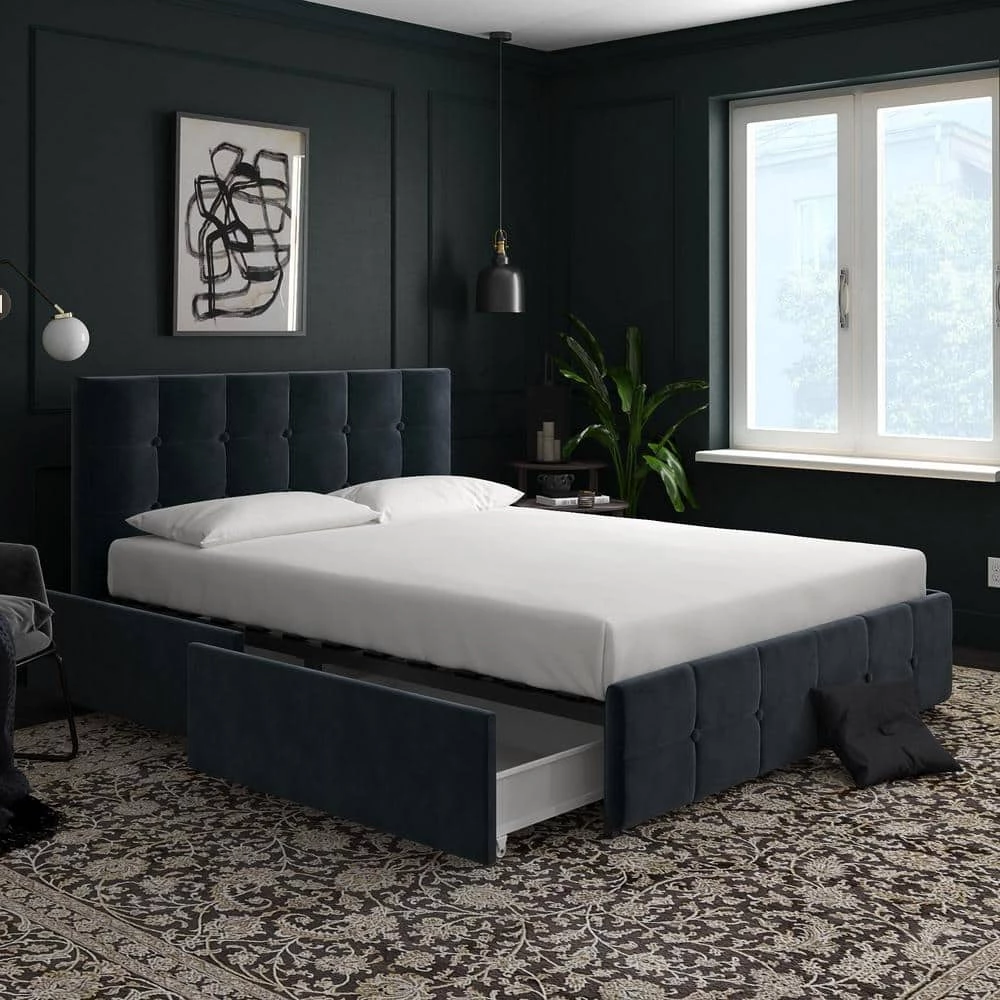 - Upholstered bed With tufted details in headboard