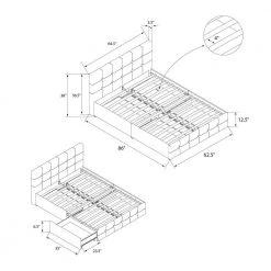 Looking for a stylish multi-purpose bed that leaves an impression? Look no further than the Ryan Upholstered Bed with-storage with its modern look and mid-century style. With its linen upholstery, button-tufted details, and foam padding, your room will never have looked so welcoming. Ideal for small spaces, the Ryan also comes with drawers to store some clothes, blankets and throw-pillows. The bentwood slat system provides incredible ventilation to keep your mattress fresh for longer by allowing air to pass freely underneath. It also offers excellent back support as it adapts to changing pressure, no matter how much you toss and turn. And there’s no box spring required.