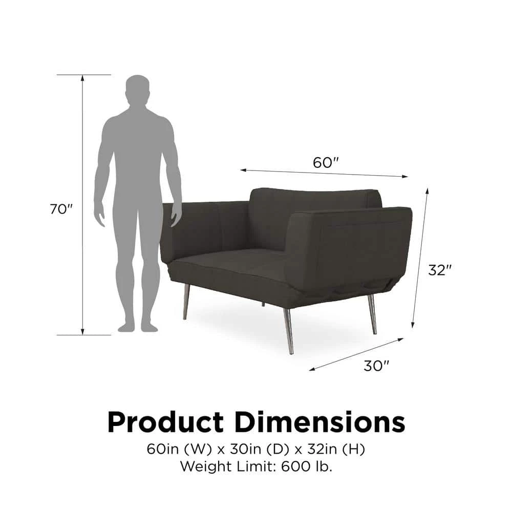 - Futon dimensions: 60 in. L x 30 in. W x 32 in. H, weight limit: 400 lbs., net weight: 63 lbs. shipping dimensions: 76 in. L x 30 in. W x 6 in. H, gross weight: 66 lbs.
