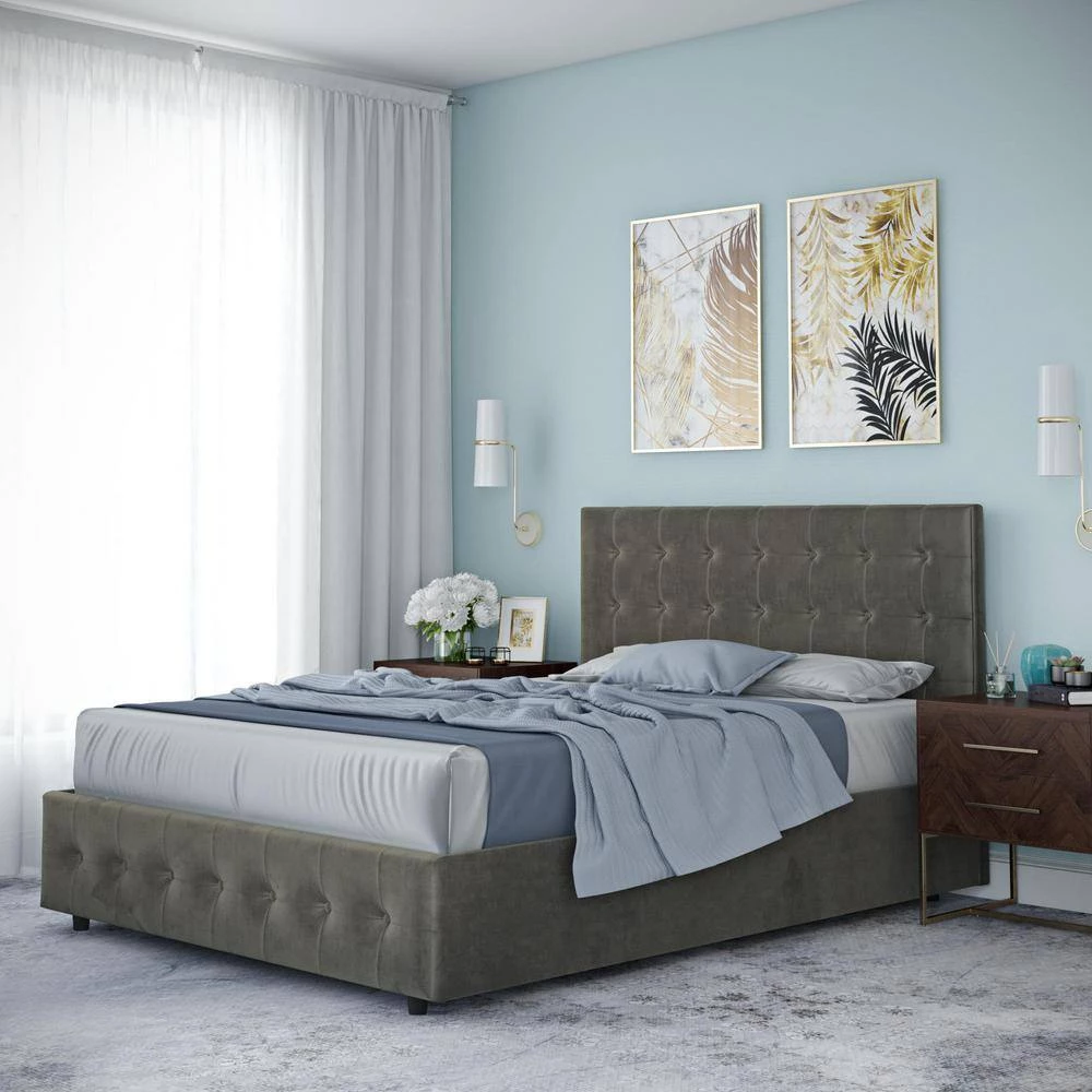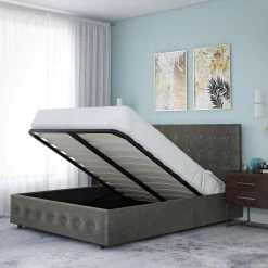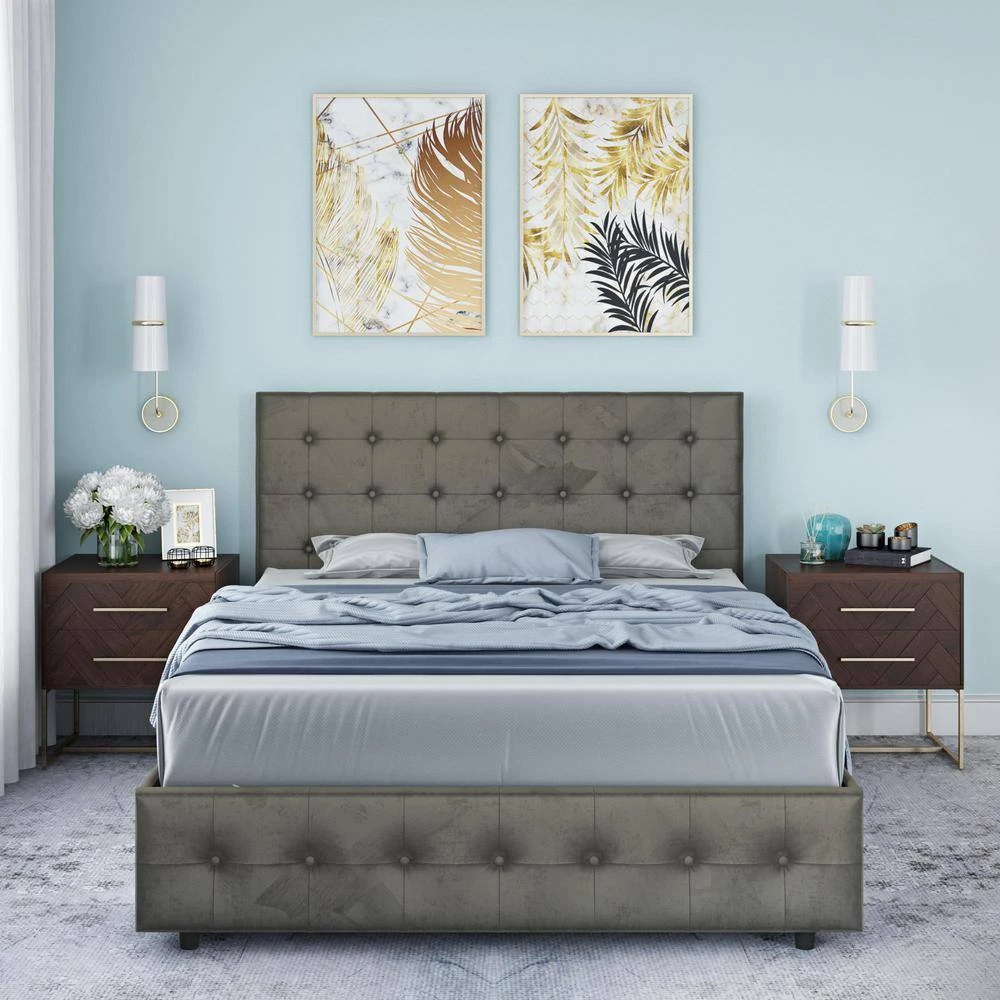 Are you constantly looking for new ways to optimize your space. The DHP Sherry Upholstered Bed is here to provide a creative solution to organize your space. The bed is designed with an extra storage compartment that can be found when lifting the mattress thanks to the Sherry’s powerful hydraulic gas lift mechanism. The large storage space can be used to store anything you can’t seem to have room for anywhere else, from winter boots to your extra sets of bed sheets. Not only is it functional, but this bed frame will also make a stylish addition to your bedroom decor. Upholstered in linen, the headboard and footboard feature a tufted design that gives it’s simple modern style an extra touch of detail. Offered in a wide variety of sizes, colors and finished, there is a perfect DHP Sherry Upholstered Bed for everyone.