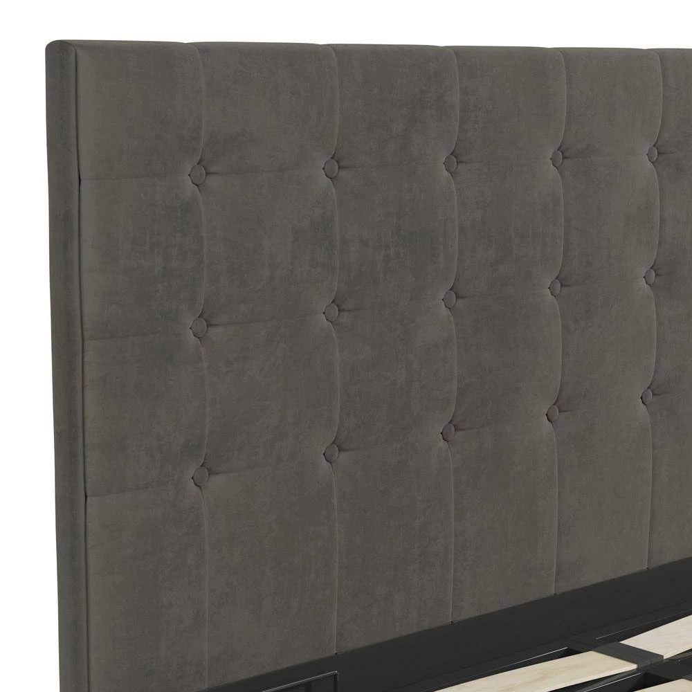 - Modern frame with rectangular headboard and footboard that feature button tufted detailing