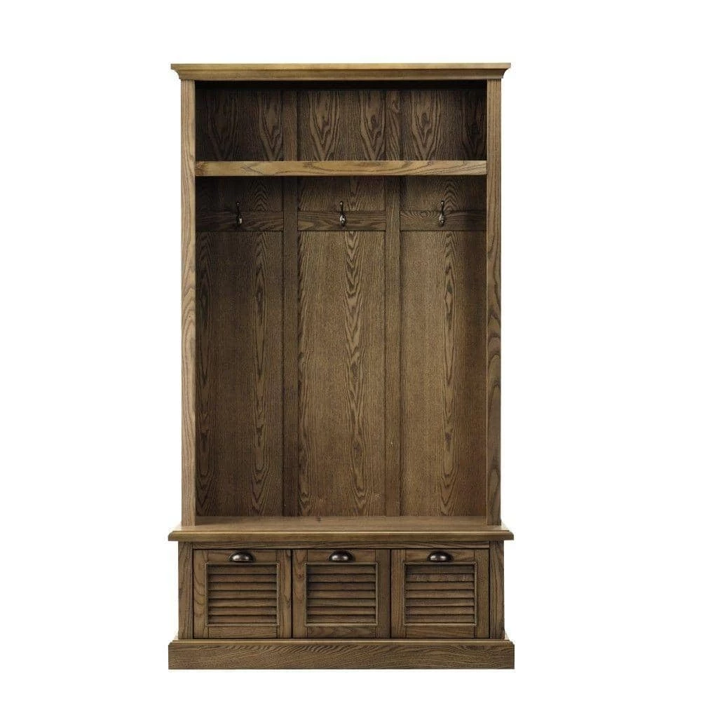 With plenty of compartments for storing your stuff when you walk in the door, our Shutter Locker Storage will make your entryway more organized. Hang jackets, purses, scarves and the like on the double hooks available inside each of the 3-compartments. Then, store hats, gloves, purses, shoes and more in the top cubbies.