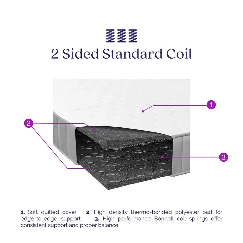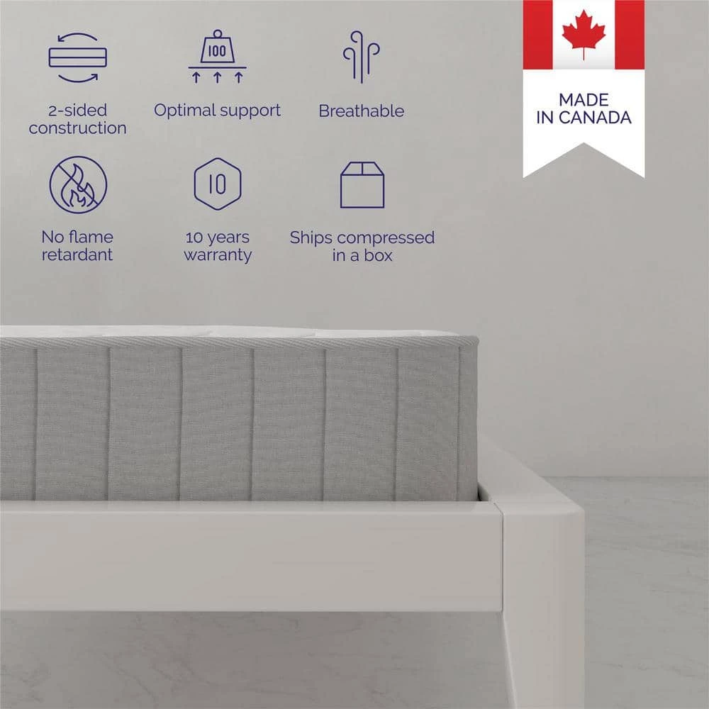 - QUALITY MADE: Skillfully crafted in Canada, the reversible mattress is comprised of 216 count high-gauge steel bonnell spring coils, dual-sided polyester pads and a quilted cover for long-lasting usage
