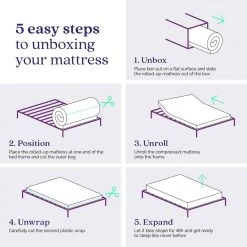 - CONVENIENT PACKAGING: Bed-in-a-Box arrives rolled and compressed for easy set up. Twin: 74″L x 38″W x 6″H. Net weight: 29 lbs. Carton: 43″L x 12″W x 12″H. Gross weight: 34 lbs. Supports average to lighter weight individuals. Spot clean only