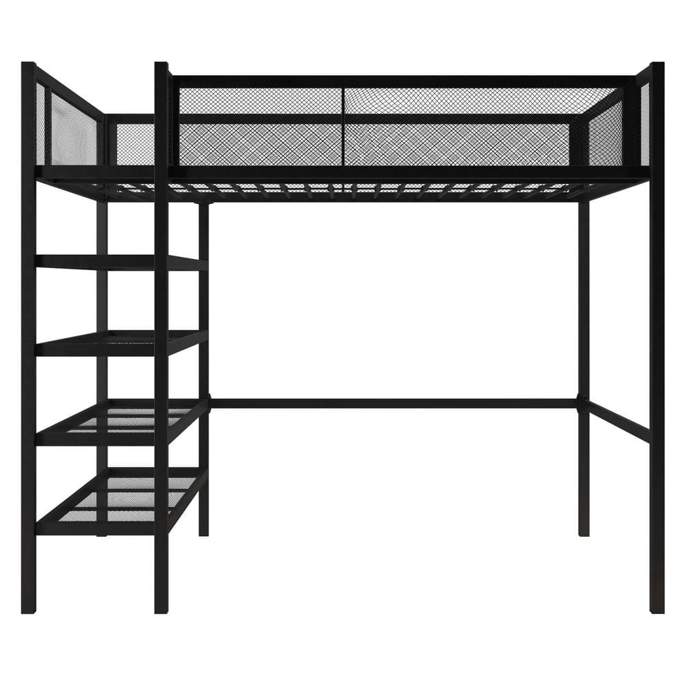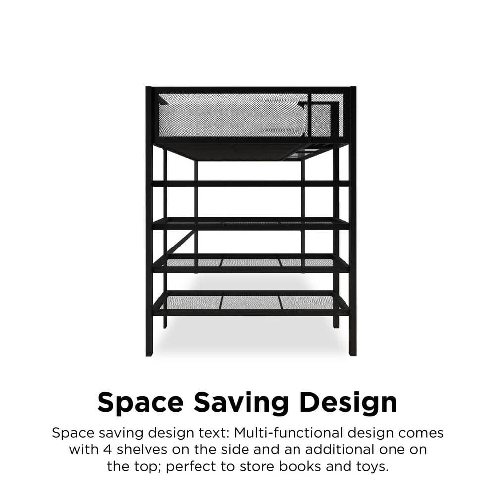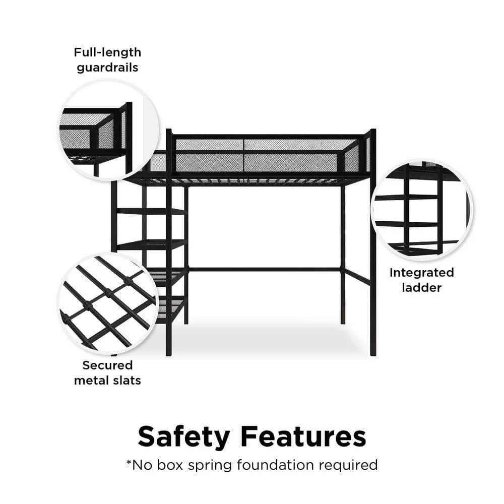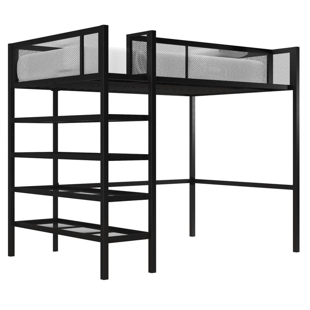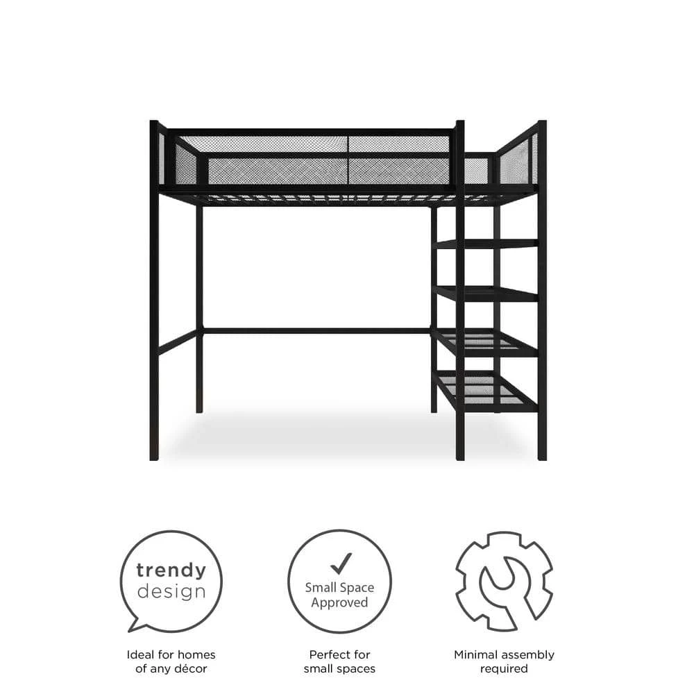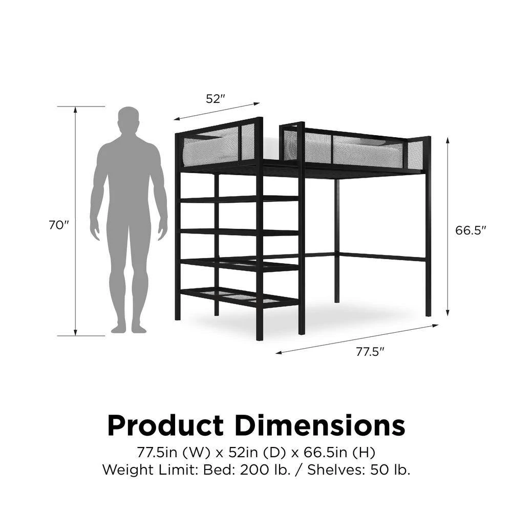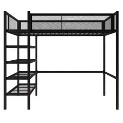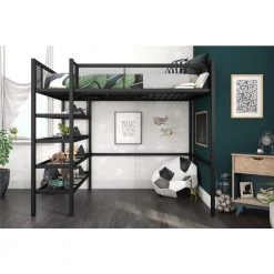 Wondering how to make the most out of the smaller bedroom. The DHP Tessa Storage Loft Bed with Bookcase is the perfect answer to that. This loft bed provides a versatile place to sleep, work or play in as it includes four built-in shelves on the side and an extra shelf on top, with an ample under-bed clearance that can be easily transformed into a relaxing lounge with some bean bag chair. The Tessa comes in a streamlined silhouette with a simplistic frame crafted of sturdy metal in a solid black finish that helps it blend seamlessly into any bedroom setting. A minimalistic ladder lends a hand when it’s time to hop onto the twin-size bed up above, while the full-length guard rails and metal slats system ensures a safe and soundly sleep throughout daily uses. What’s more, the Tessa is constructed to be shorter in height compared to the standard loft bed, making it especially convenient for small spaces. No foundation is required. Ideal for a studio apartment and child’s room, turn bedtime into a fun experience with the Tessa Storage Loft Bed with Bookcase.