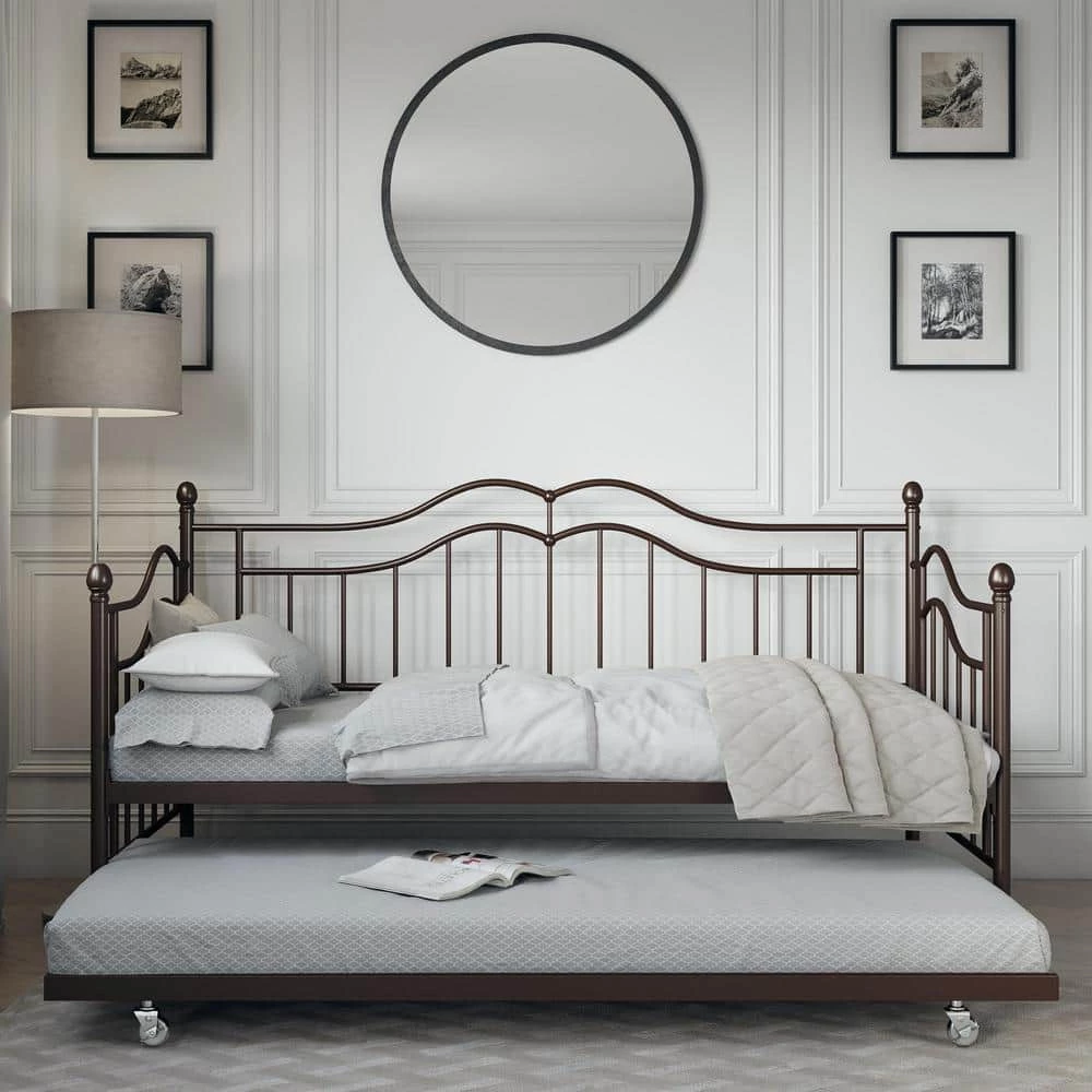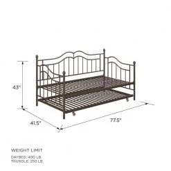 Inspired by elegance and class, this daybed is sure to be a statement piece in any living space. The soft curves and intricate lines on the headboard and footboard along with the brushed bronze finish exude a timeless appeal that never goes out of style. Perfect for sleeping or relaxing, the DHP Tokyo Daybed is also an attractive addition to your decor and comes in very practical with its accompanying trundle for accommodating extra guests. Paired with contemporary furniture or country-inspired furniture, this daybed is certain to add some charm and character to your room.
