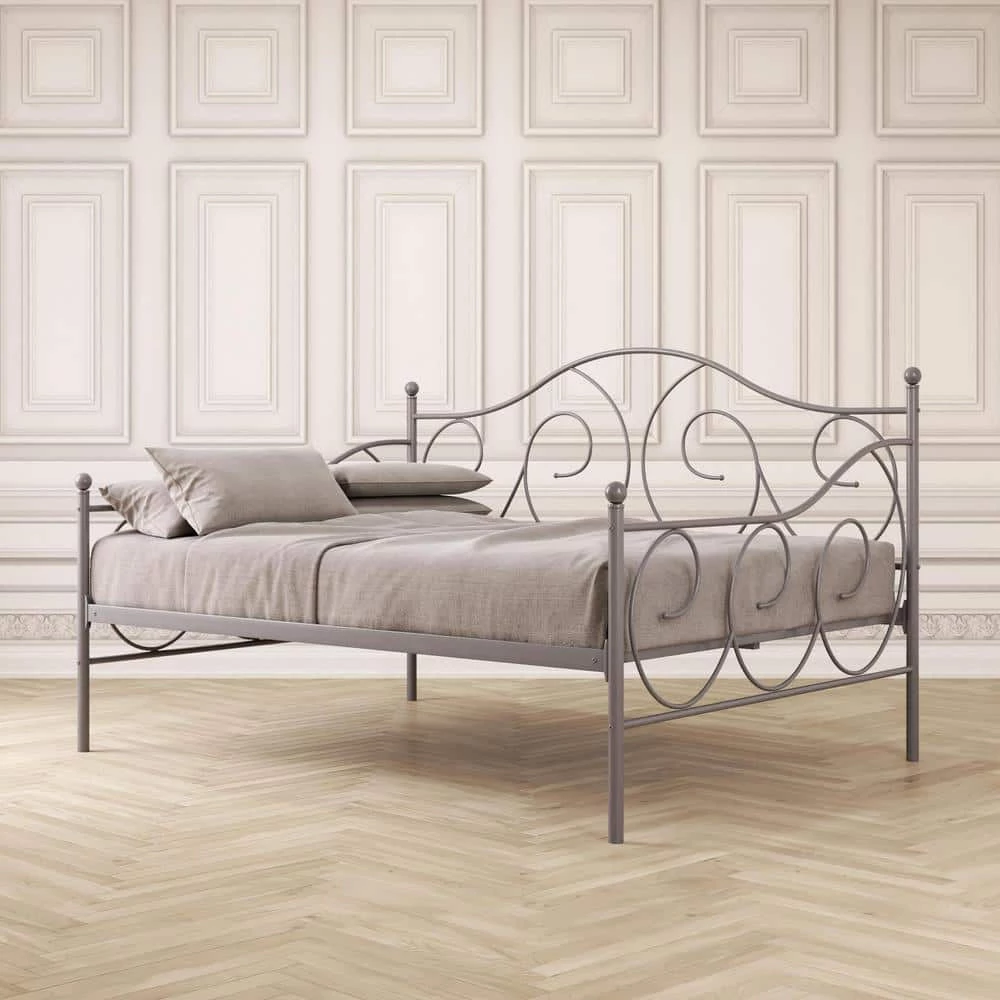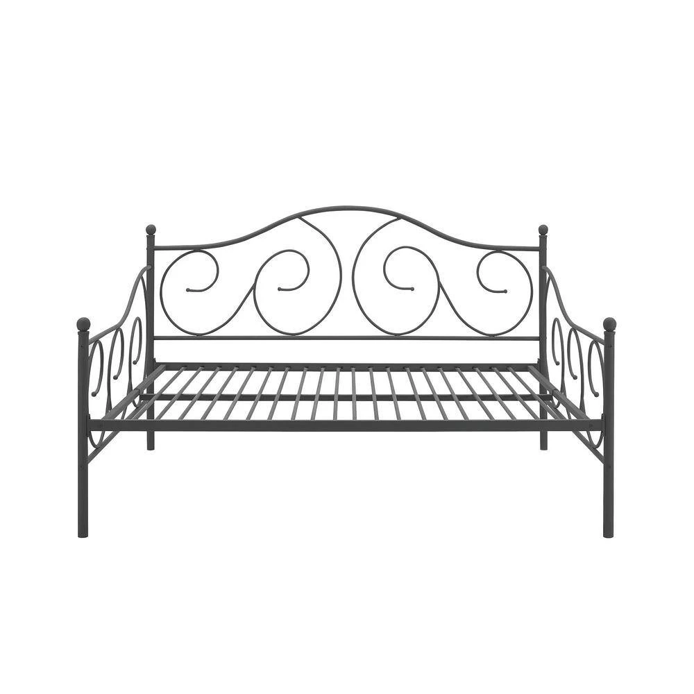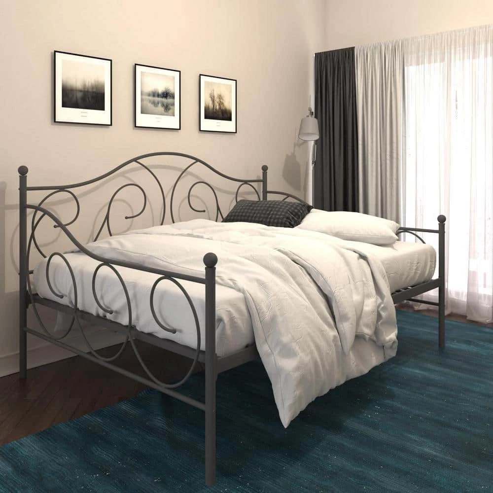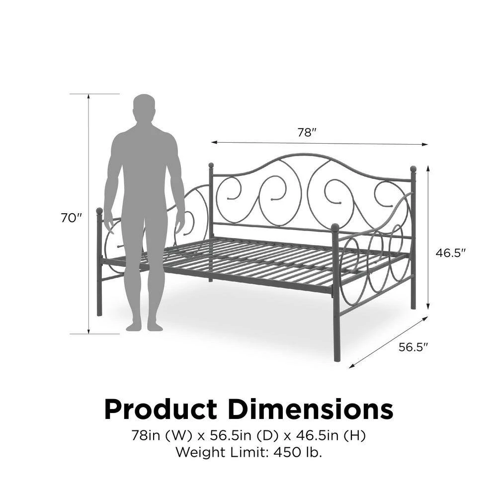 Add instant charm to your living room, bedroom or home office with the DHP Vanya Metal Daybed. Its classic look make this impeccable piece perfect to accentuate your home. Designed with versatility in mind, this daybed can be used as a couch in your salon or as a bed for overnight guests. The Vanya is made with finial posts and an elaborate carving in brushed metal to get an elegant Victorian style. The frame is constructed with a robust metal and includes secured metal slats and supporting legs to ensure stability, durability and comfort. Additional foundation is not required.