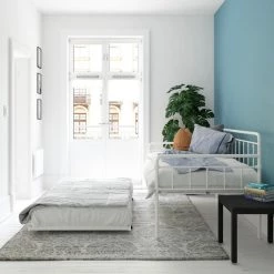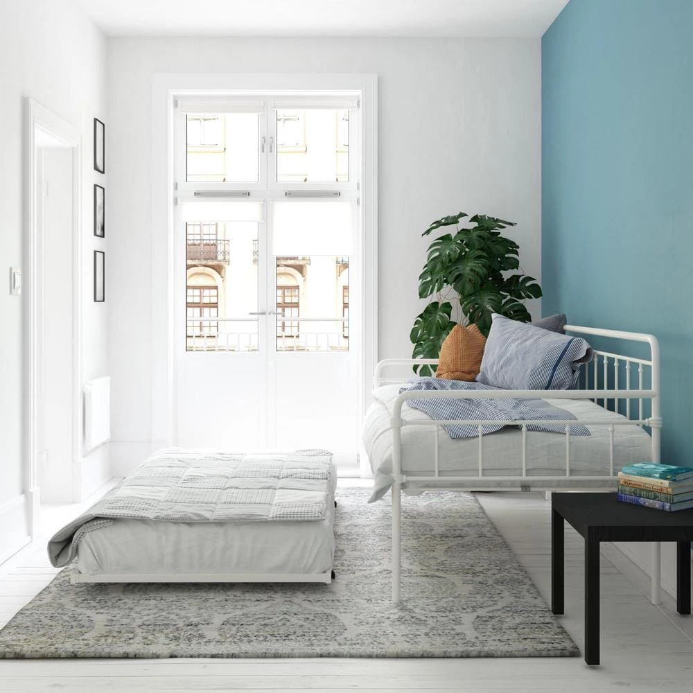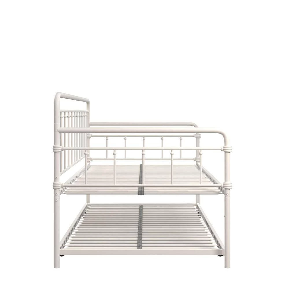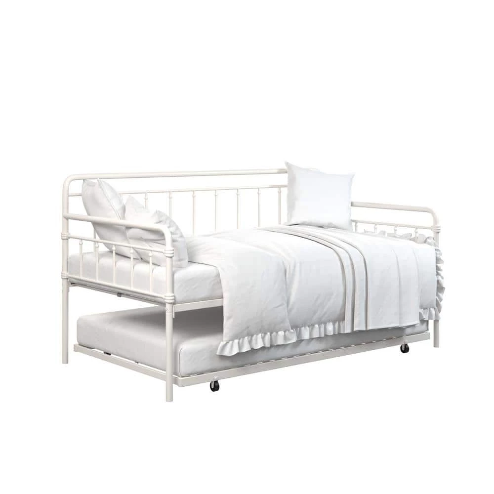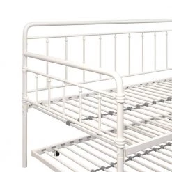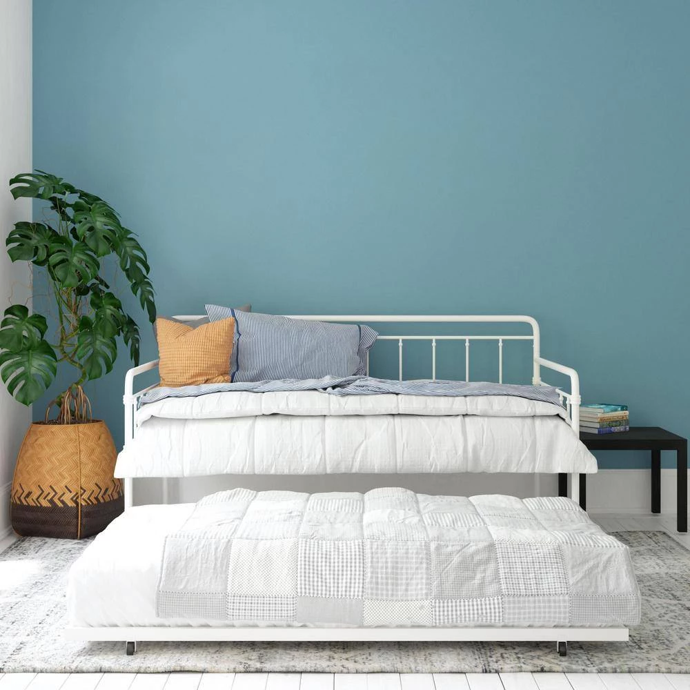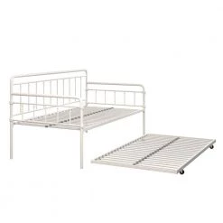 The DHP Windsor Metal Daybed and Trundle is the small space living dream come true. Whether you need it for your living room, guest bedroom or child’s bedroom, this daybed guarantees to make your home more functional. The Windsor is designed with a classic curved metal frame and features a roll out trundle that locks into place when needed. What’s more, both the daybed and the trundle include secured metal slats to allow for mattress support and breathability. Which means you don’t need any additional box spring or foundation. Simply pair with your favorite mattresses (sold separately). The daybed and trundle fit two standard twin size mattresses. With the DHP Windsor Metal Daybed and Trundle, your game night with friend or family are about to get that much more simple.