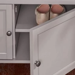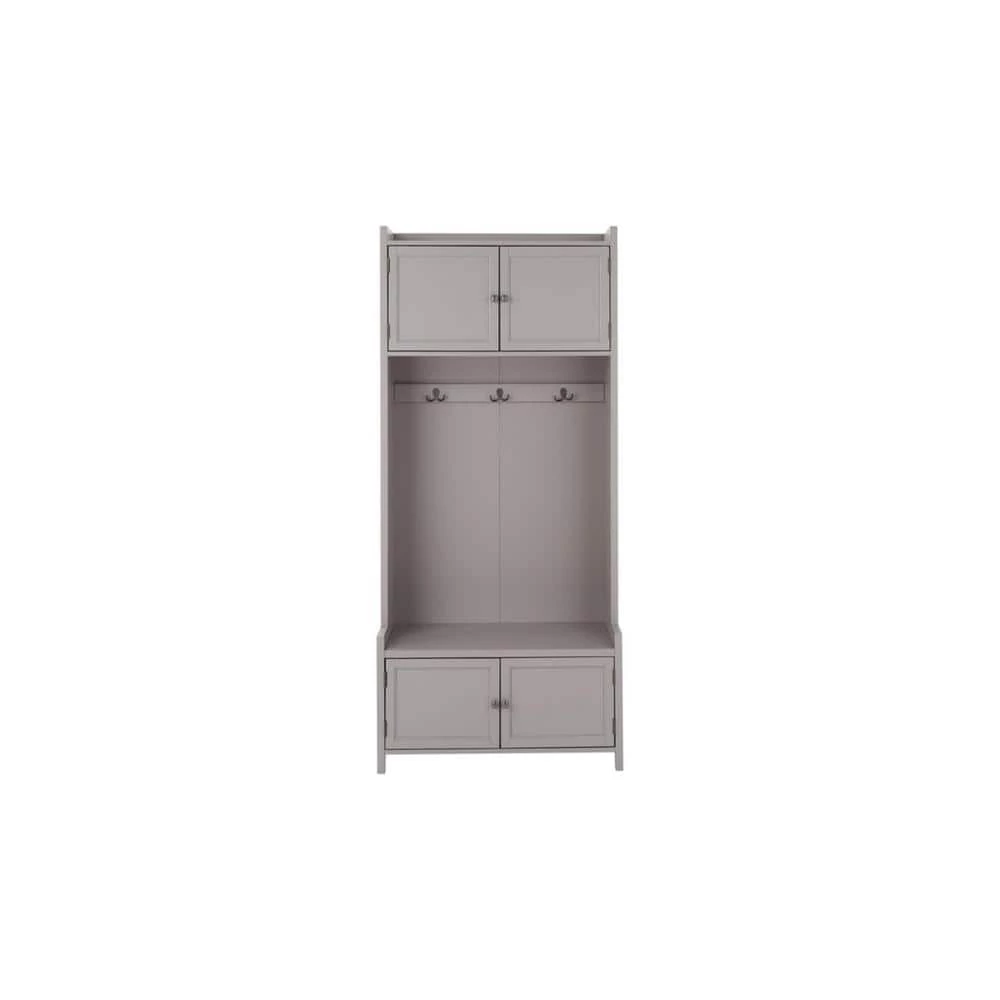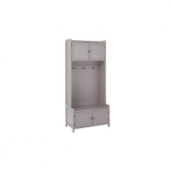 Our Home Decorators Collection Wolcott hall tree tackles clutter the moment you enter the door. This charming bench and store-all has hooks for guest coats and pet leashes and concealed storage behind the doors. The classic profile fits in a small entry area; two or more can be placed side by side in a larger space.
